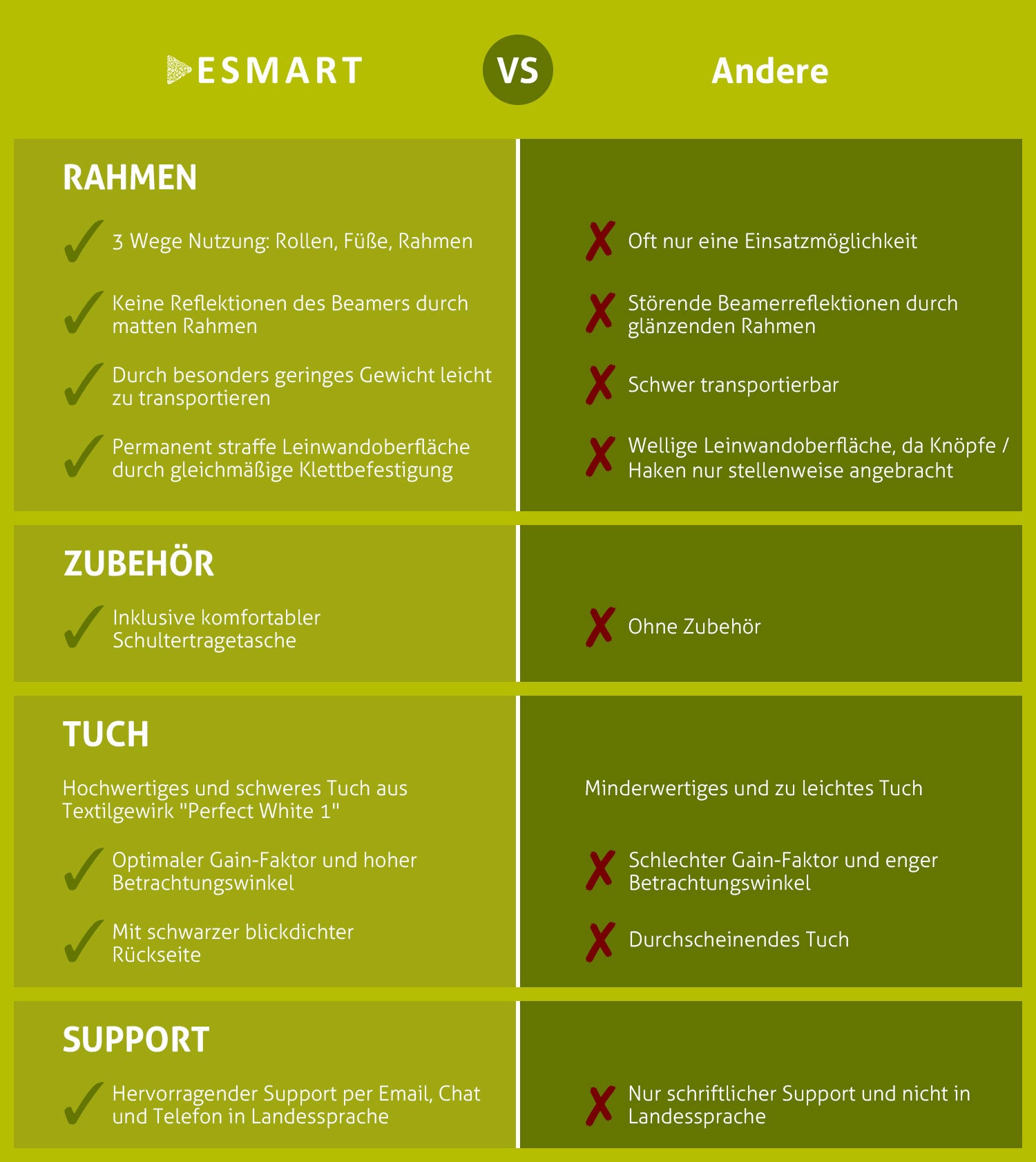 Die ESMART Economy EXA Faltrahmen Leinwand bietet eine Vielzahl von Funktionen