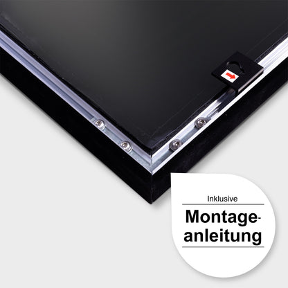 Angebracht wird die Rahmenleinwand direkt an der Wand. Mithilfe des detaillierten Handbuchs ist die Montage schnell und einfach durchgeführt.