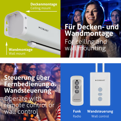 Die elektrische ESMART Economy EXM Motor Leinwand bietet eine Vielzahl von Funktionen