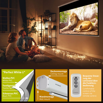 Mithilfe der enthaltenen Fernbedienung kannst Du die Leinwand komfortabel steuern.
