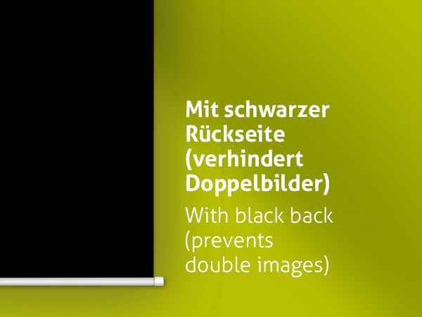 Die Rückseite des Leinwandstoffs ist schwarz und blickdicht, wodurch das projizierte Bild hell und farbintensiv auf der Vorderseite verbleibt und sogenannte Doppelbilder verhindert werden.