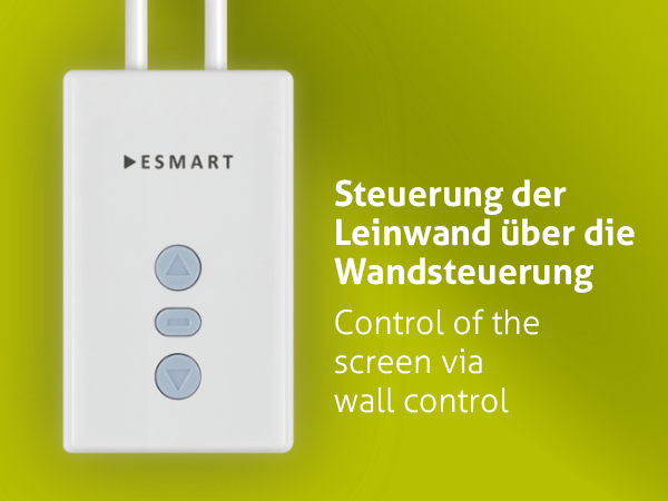Mithilfe der Wandsteuerung kannst Du die Leinwand steuern.