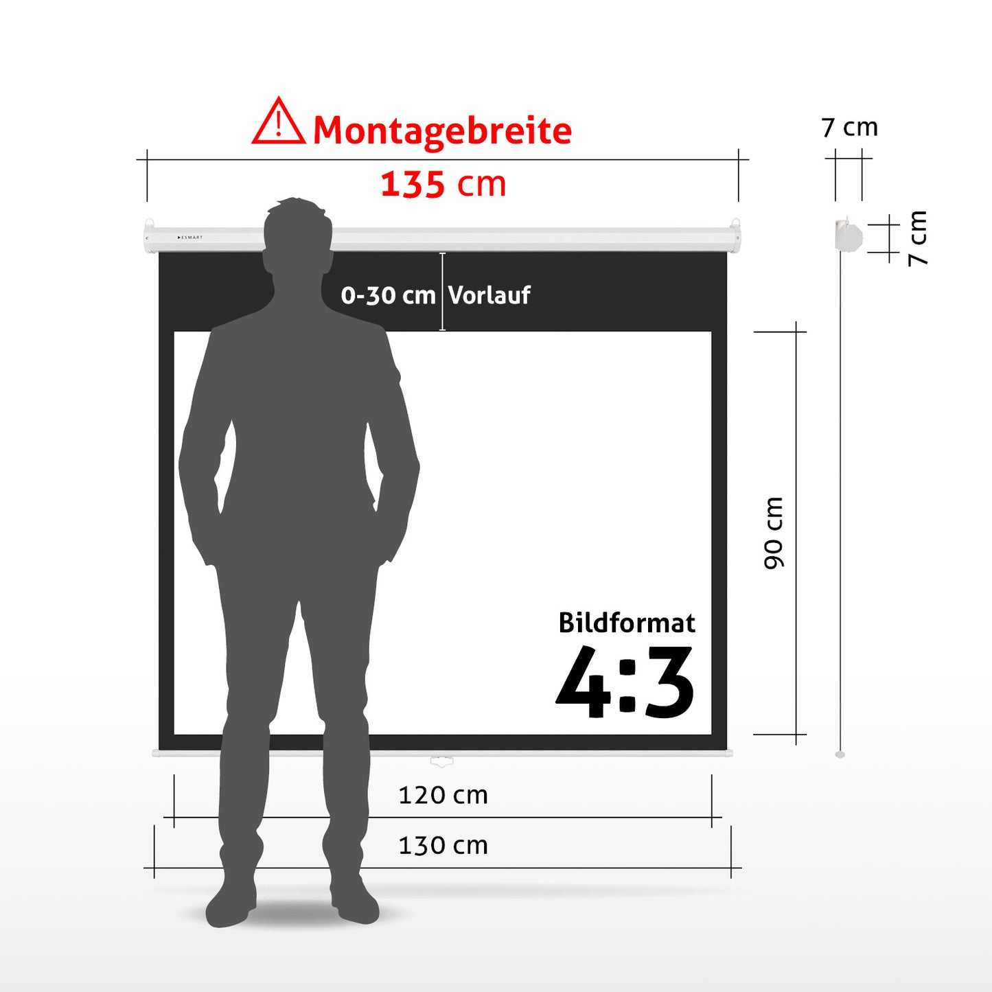 Angebracht werden kann die Leinwand an der Decke oder an der Wand. Mithilfe des detaillierten mehrsprachigen Handbuchs ist die Montage schnell und einfach durchgeführt.