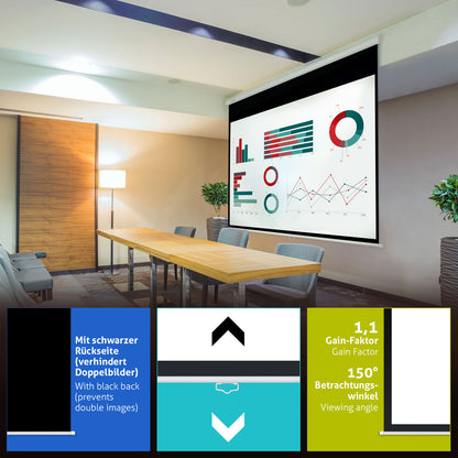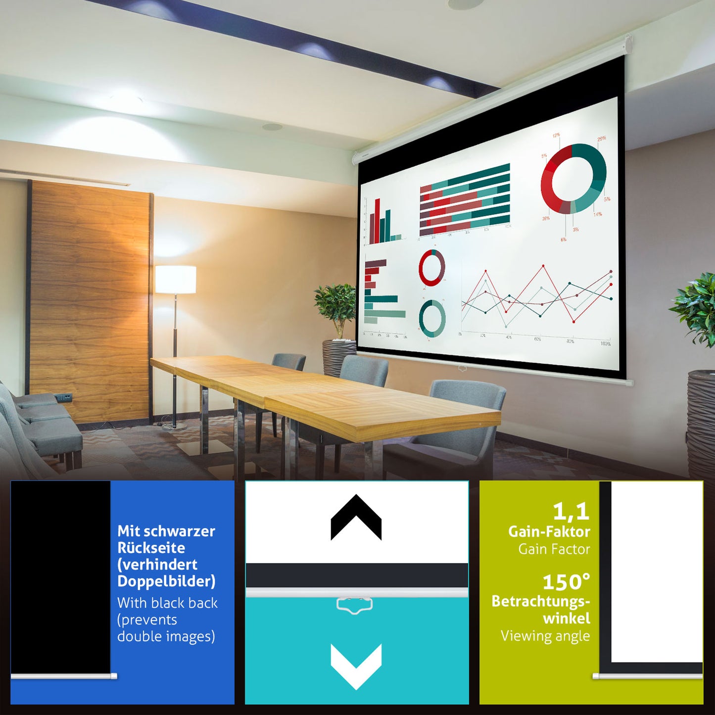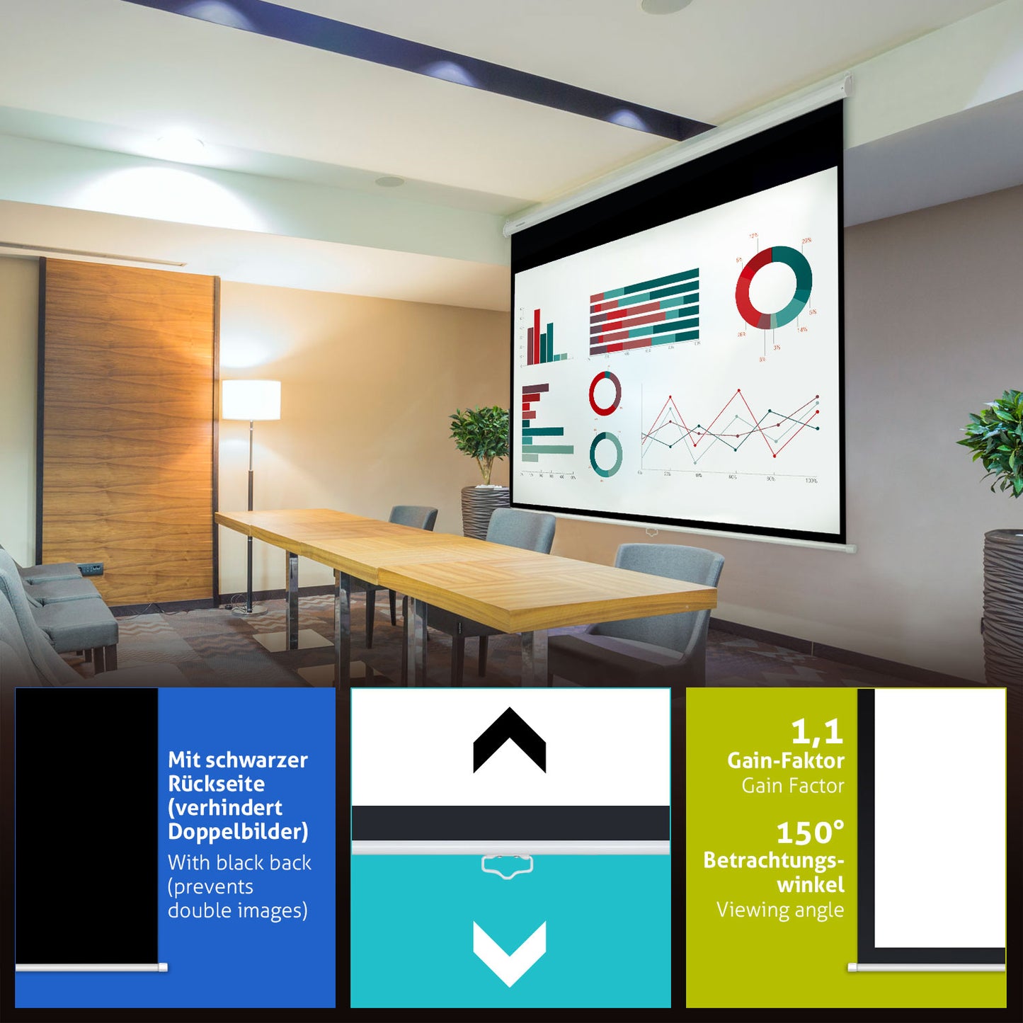 Das elegante Slimline-Oktagon-Gehäuse und das hochwertige Leinwandtuch machen dieses Produkt zur idealen Leinwand für Heimkino, Präsentation, Schule und Business.