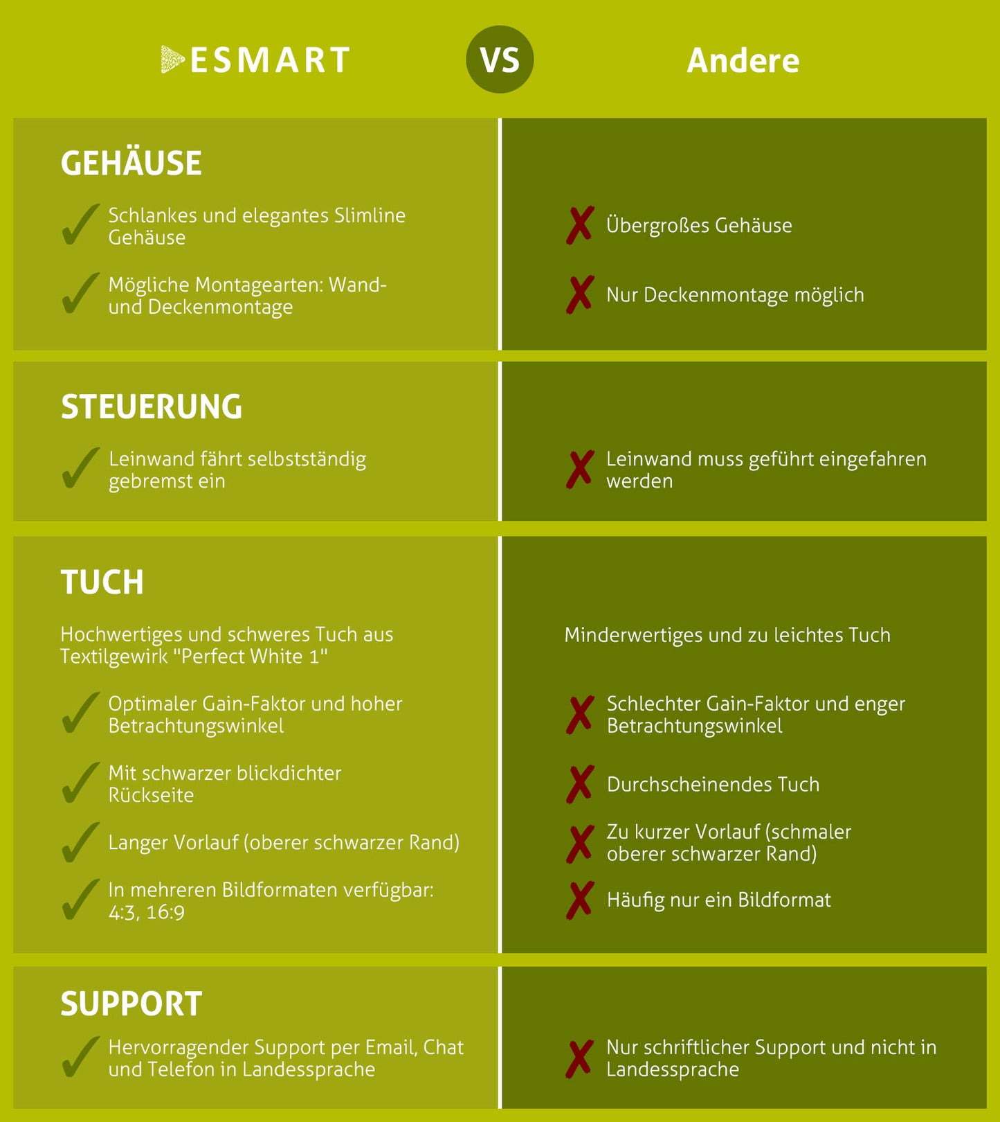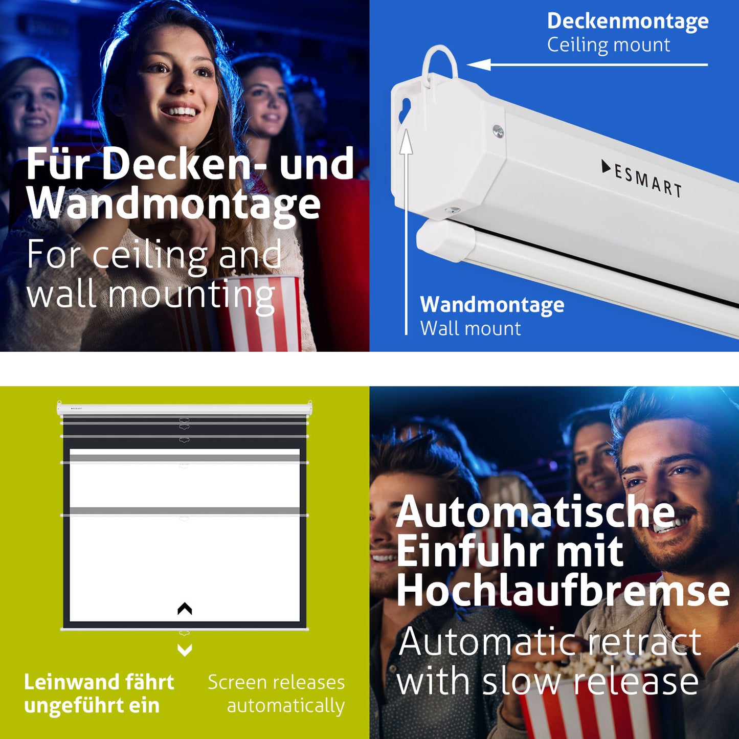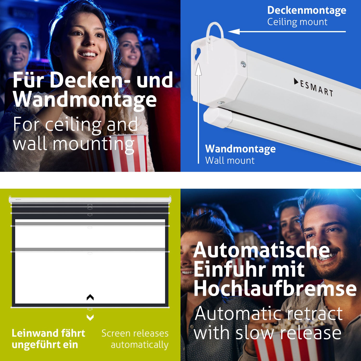 Die ESMART Economy EXR Rollo Leinwand bietet eine Vielzahl von Funktionen