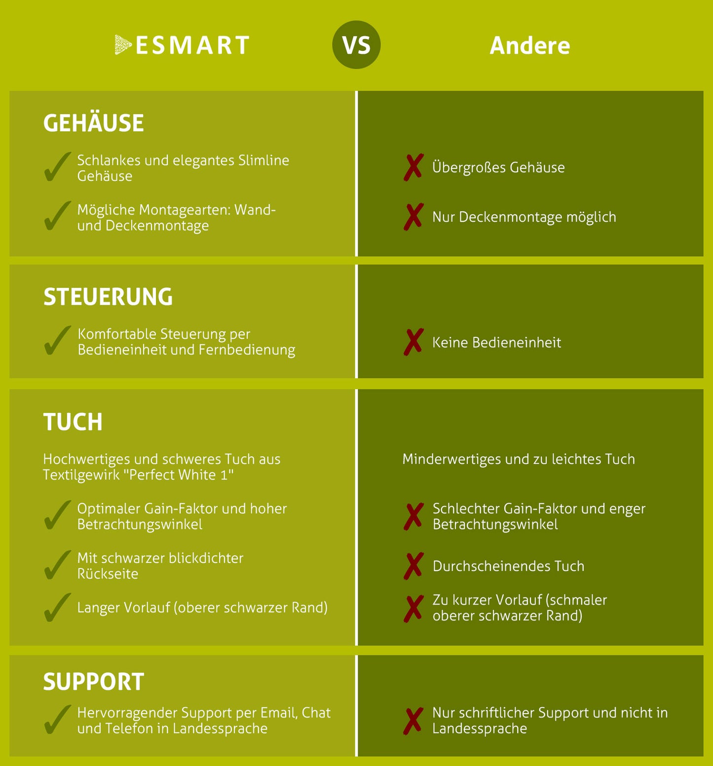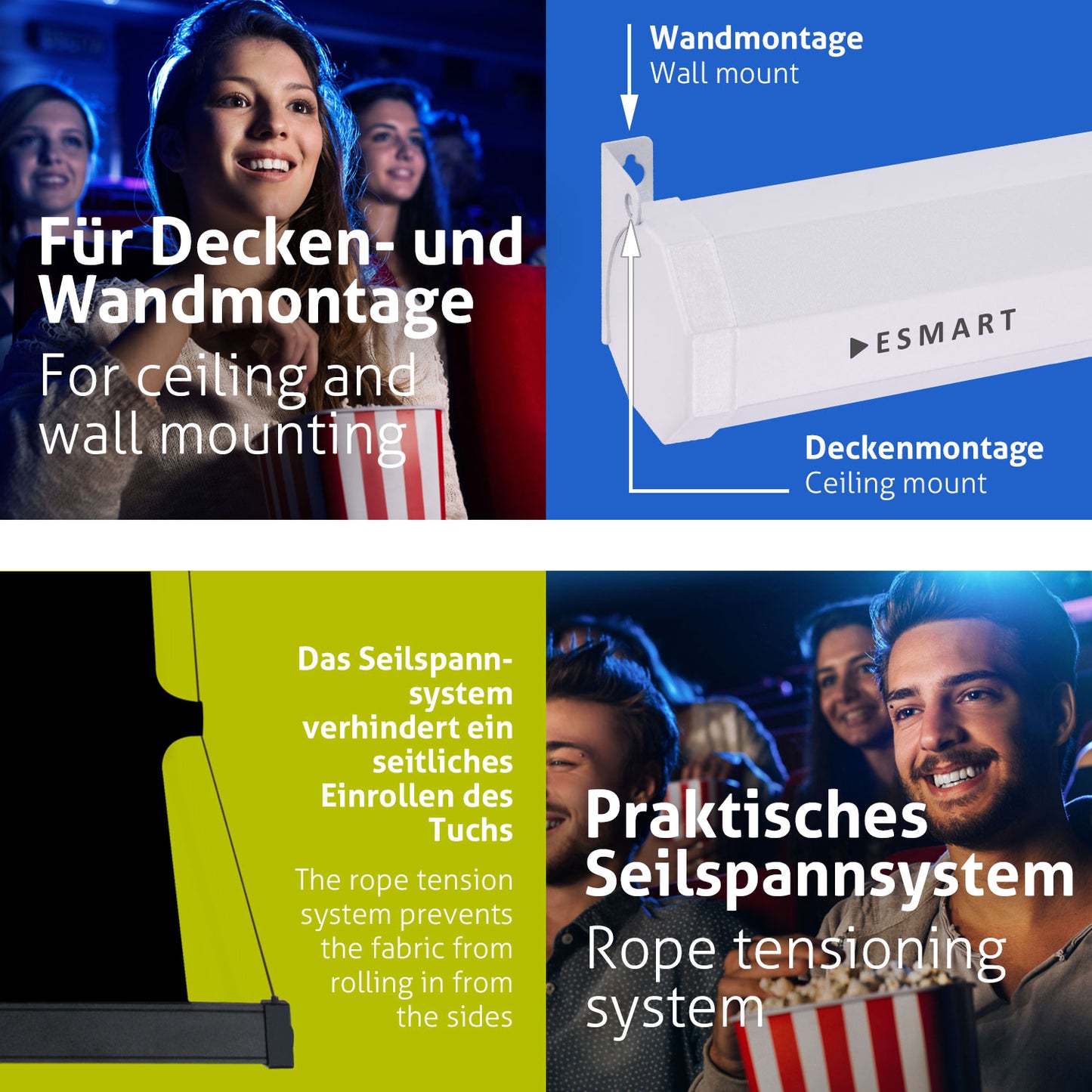 Die elektrische ESMART Economy EXT Tension Leinwand bietet eine Vielzahl von Funktionen