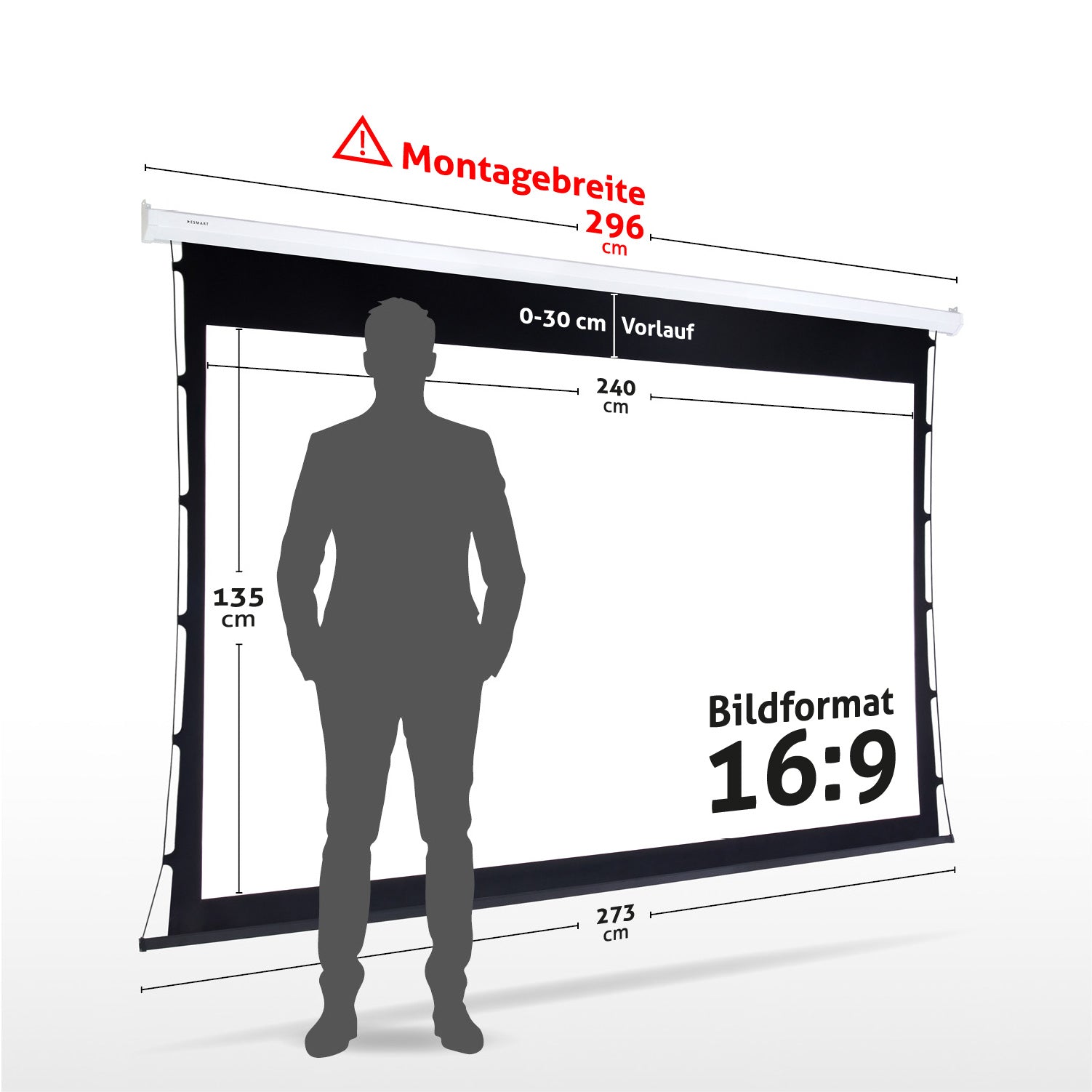 | 16:9 | 240 x 135 cm (108") | 296 x 9 x 7,5 cm | 273 cm | max. 30 cm | 4-7/4-7/5 cm | Oktagon |