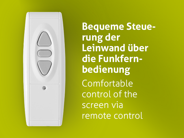 Mithilfe der enthaltenen Fernbedienung kannst Du die Leinwand komfortabel steuern.