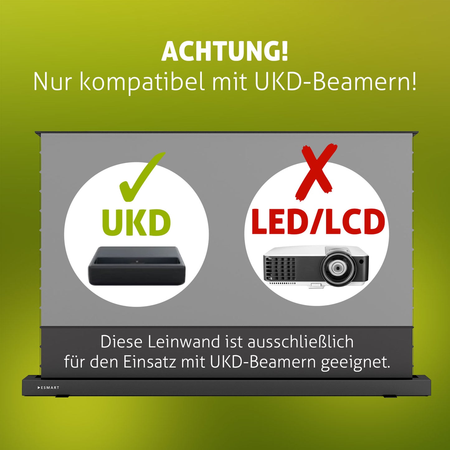 Im Gegensatz zu einem TV-Gerät über 75 Zoll, das im ausgeschalteten Zustand oft unschön wirkt und das Einrichtungsbild stört, bietet der EXPERT UKDX ALR Bildschirm eine elegante Lösung. Durch ihre flache Wandmontage integriert sie sich unauffällig in den Raum und nimmt weniger Platz ein als ein ausgeschaltetes TV-Gerät. Die CBSP-Technologie verbessert Kontrast und Farbwiedergabe erheblich, was besonders in helleren Räumen für eine hervorragende Bildqualität sorgt und das Seherlebnis maximiert.
