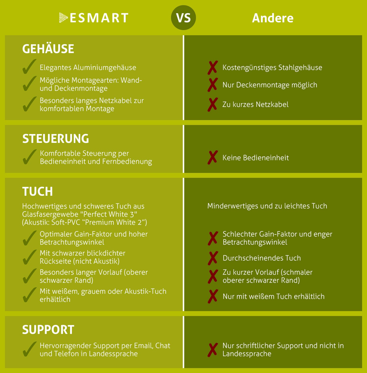 - Gain-Faktor: 1,2 (optimal für LED-, LCD- & DLP-Projektoren)