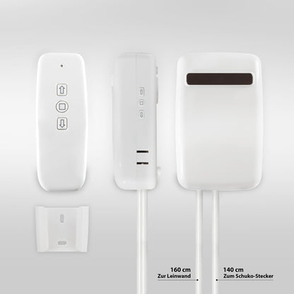 Die XTR Tension-Leinwand kann über die mitgelieferte Wandsteuerung oder die mitgelieferte Funkfernbedienung bedient werden.