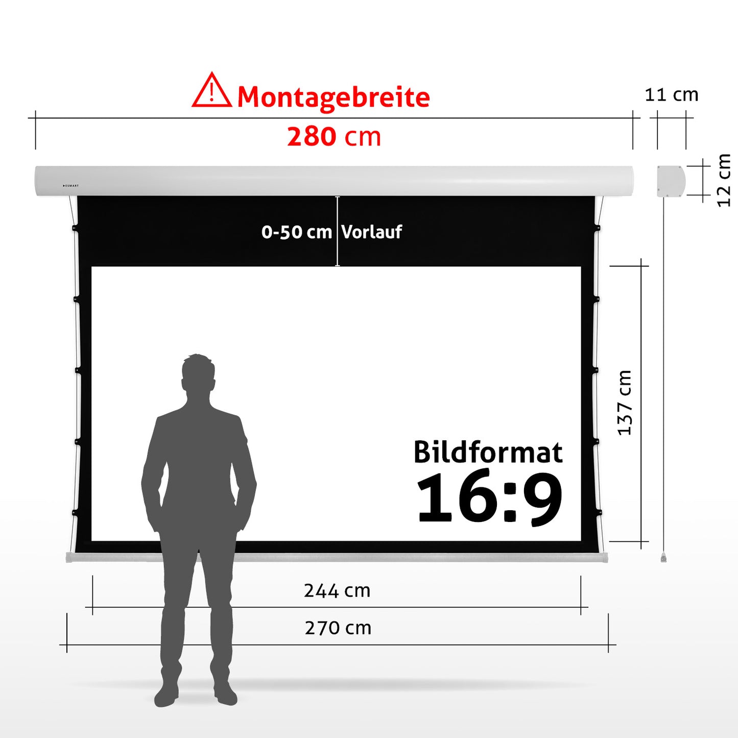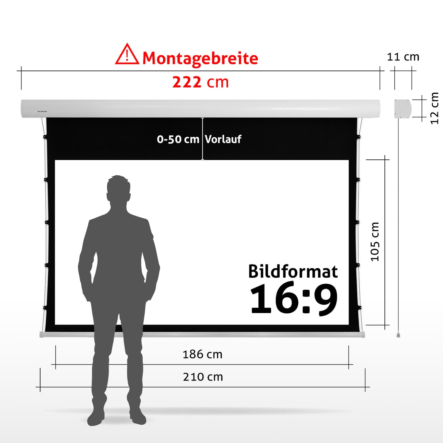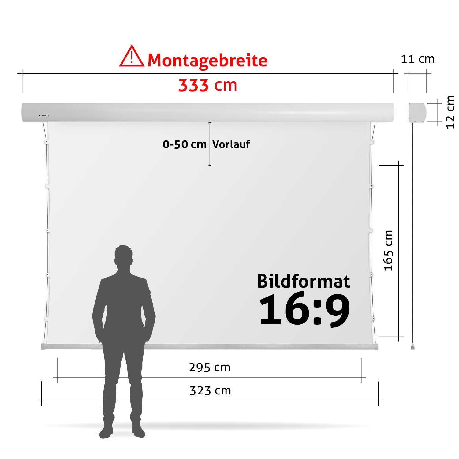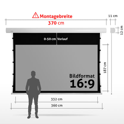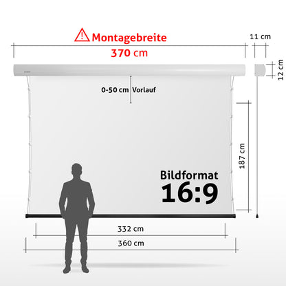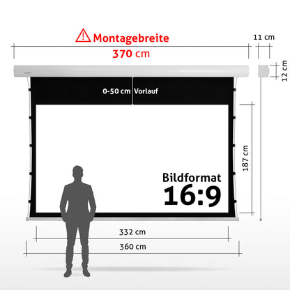 - Leinwandgehäuse: 370 cm x 12 cm x 11 cm (B x H x T)