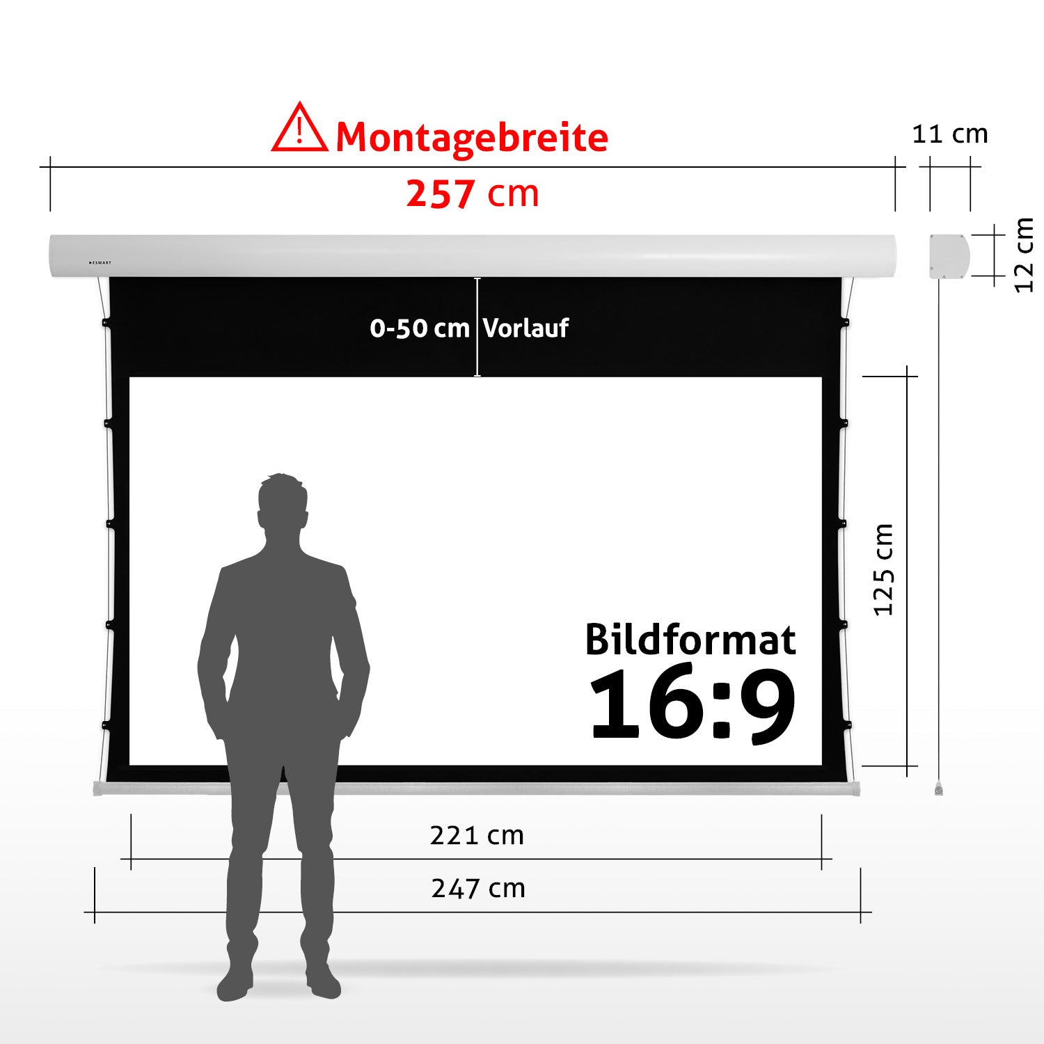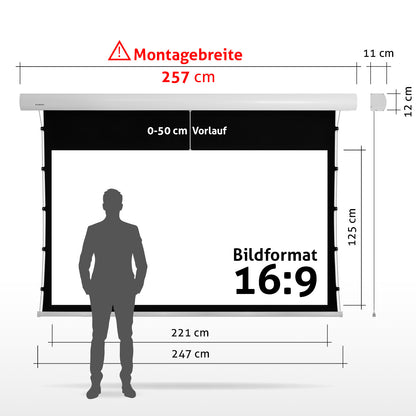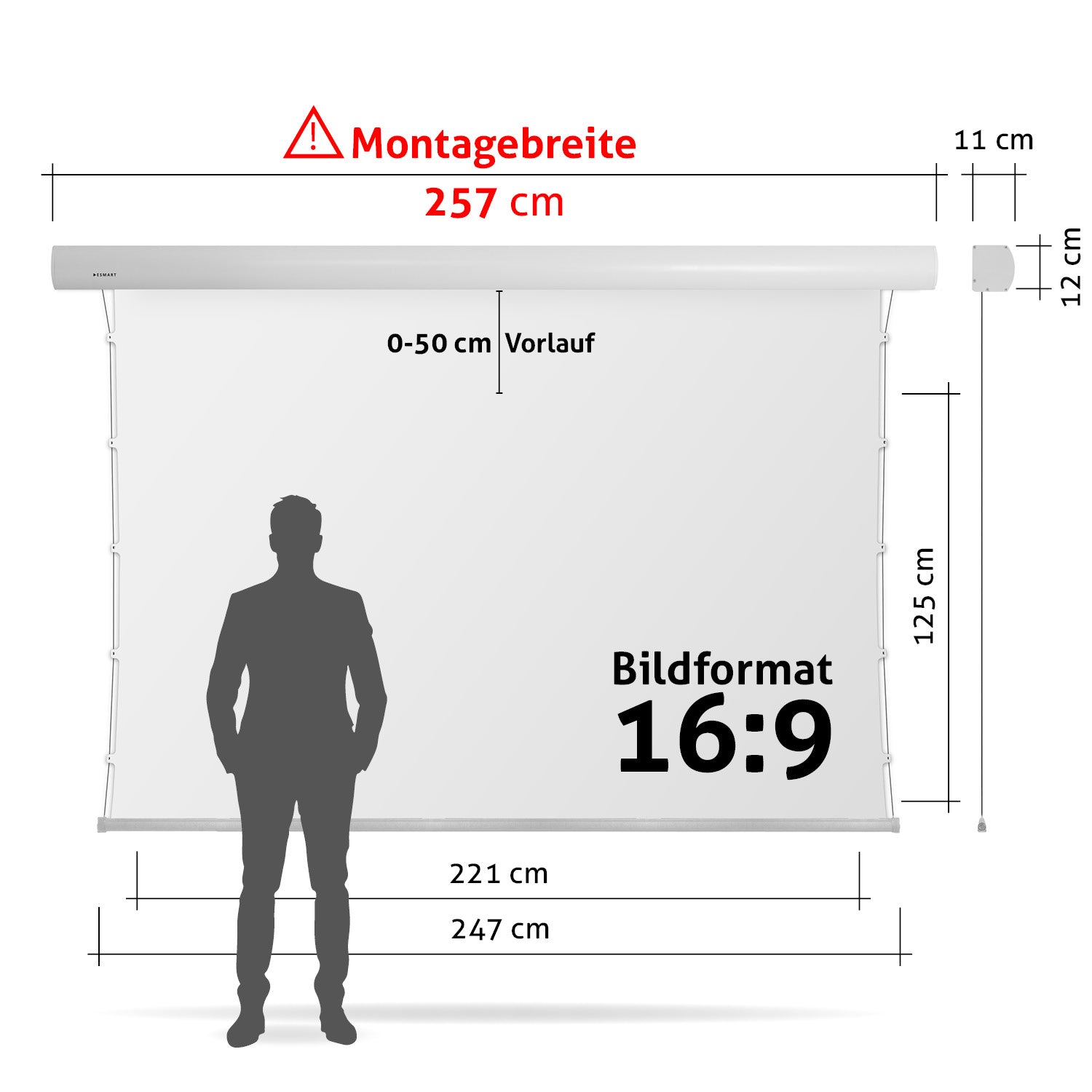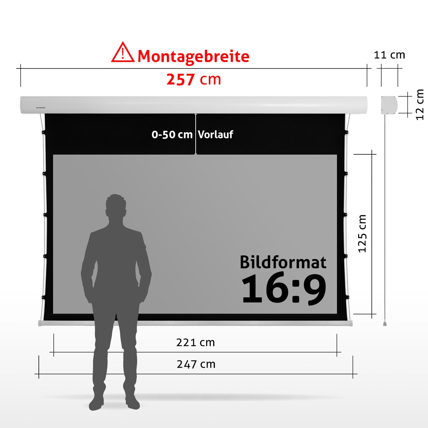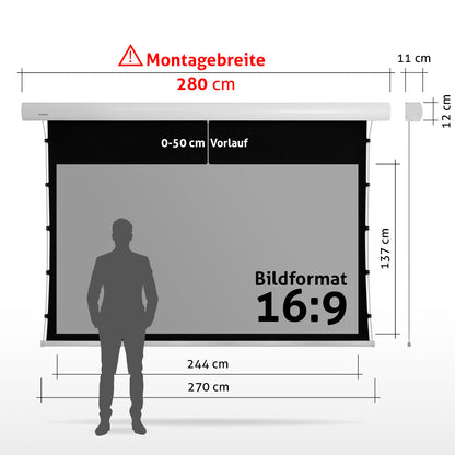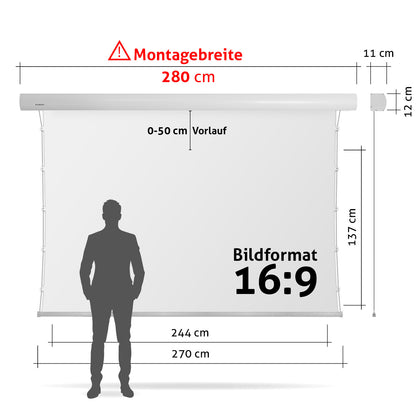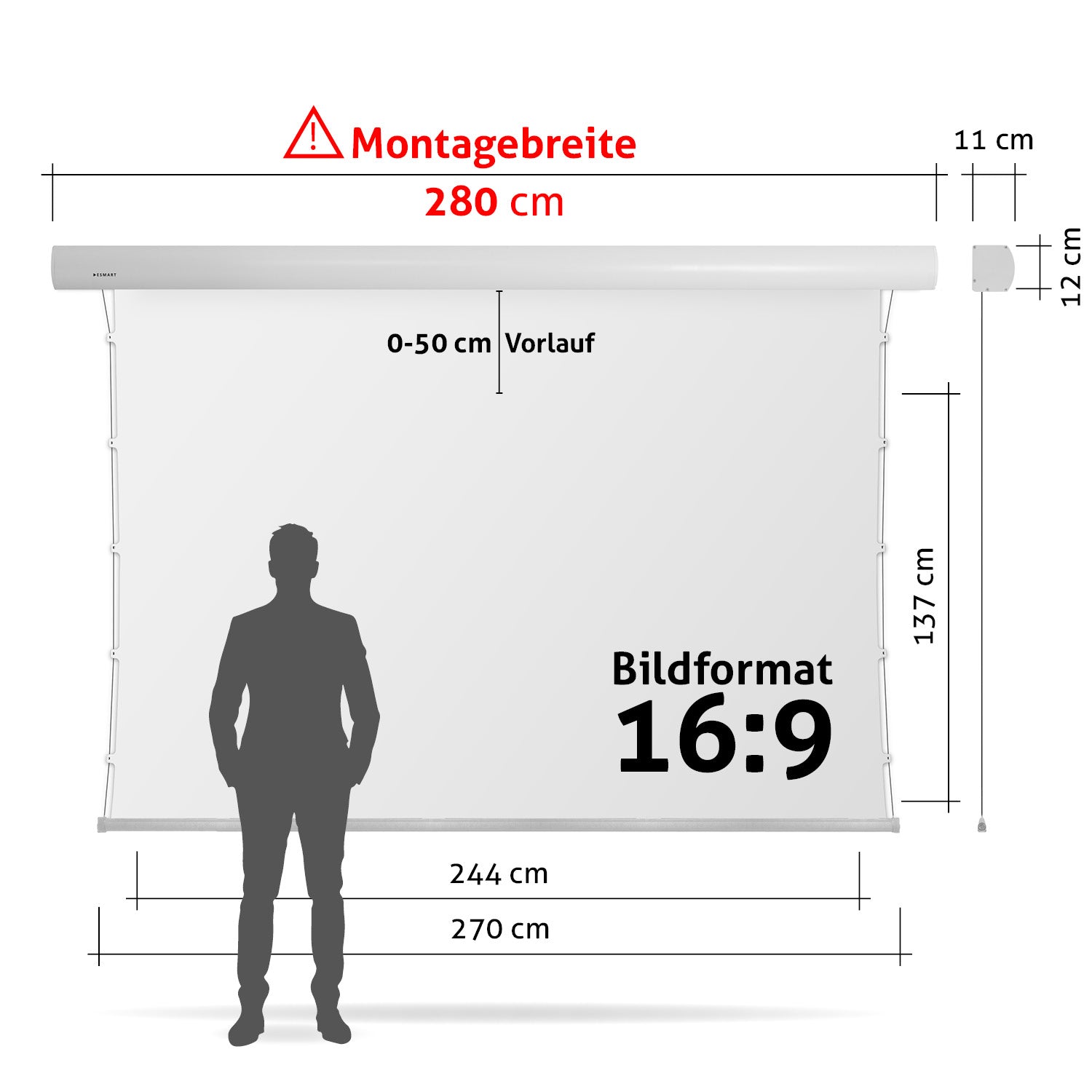 - Leinwandgehäuse: 370 cm x 12 cm x 11 cm (B x H x T)