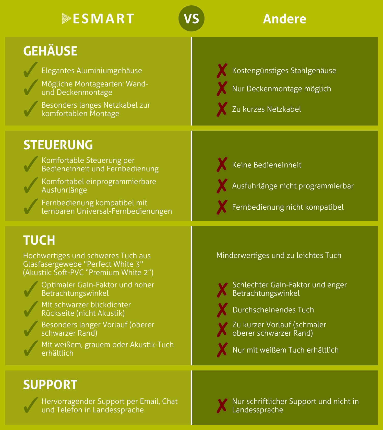 - Gain-Faktor: 1,1 (optimal für LED-, LCD- & DLP-Projektoren)