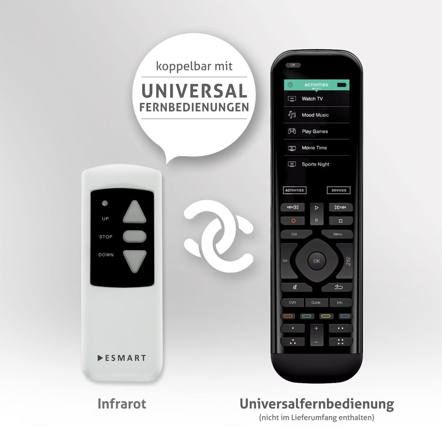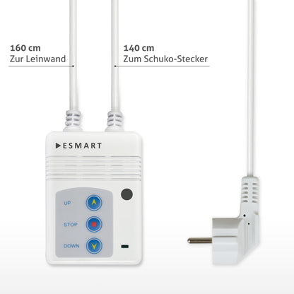 Die XTS Tension-Leinwand kann über die mitgelieferte Wandsteuerung, die mitgelieferte programmierbare Funkfernbedienung oder die mitgelieferte programmierbare Infrarotfernbedienung bedient werden.
