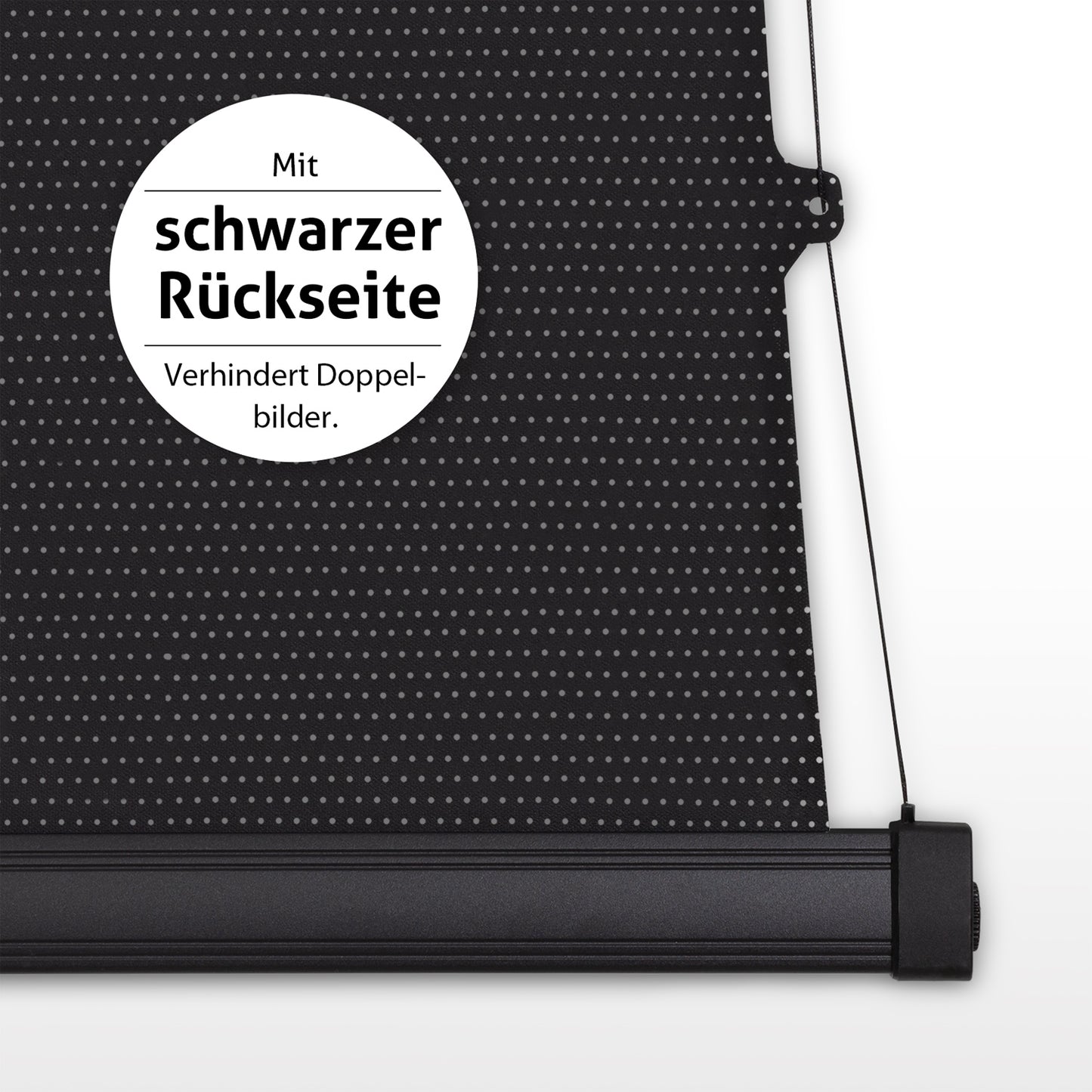 Das undurchsichtige Leinwandtuch reflektiert den auftreffenden Lichtstrahl einheitlich in alle Richtungen. Ohne hellere oder dunklere Stellen erscheint die Projektion immer gleichmäßig ausgeleuchtet. Dadurch bleibt das projizierte Lichtbild auf der Vorderseite hell und farbintensiv. Sogenannte Doppelbilder werden durch die schwarze, lichtundurchlässige Leinwandrückseite ausgeschlossen.
