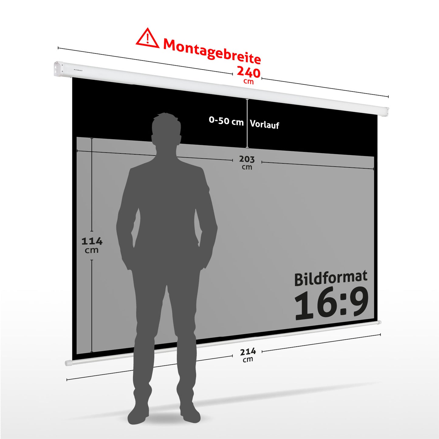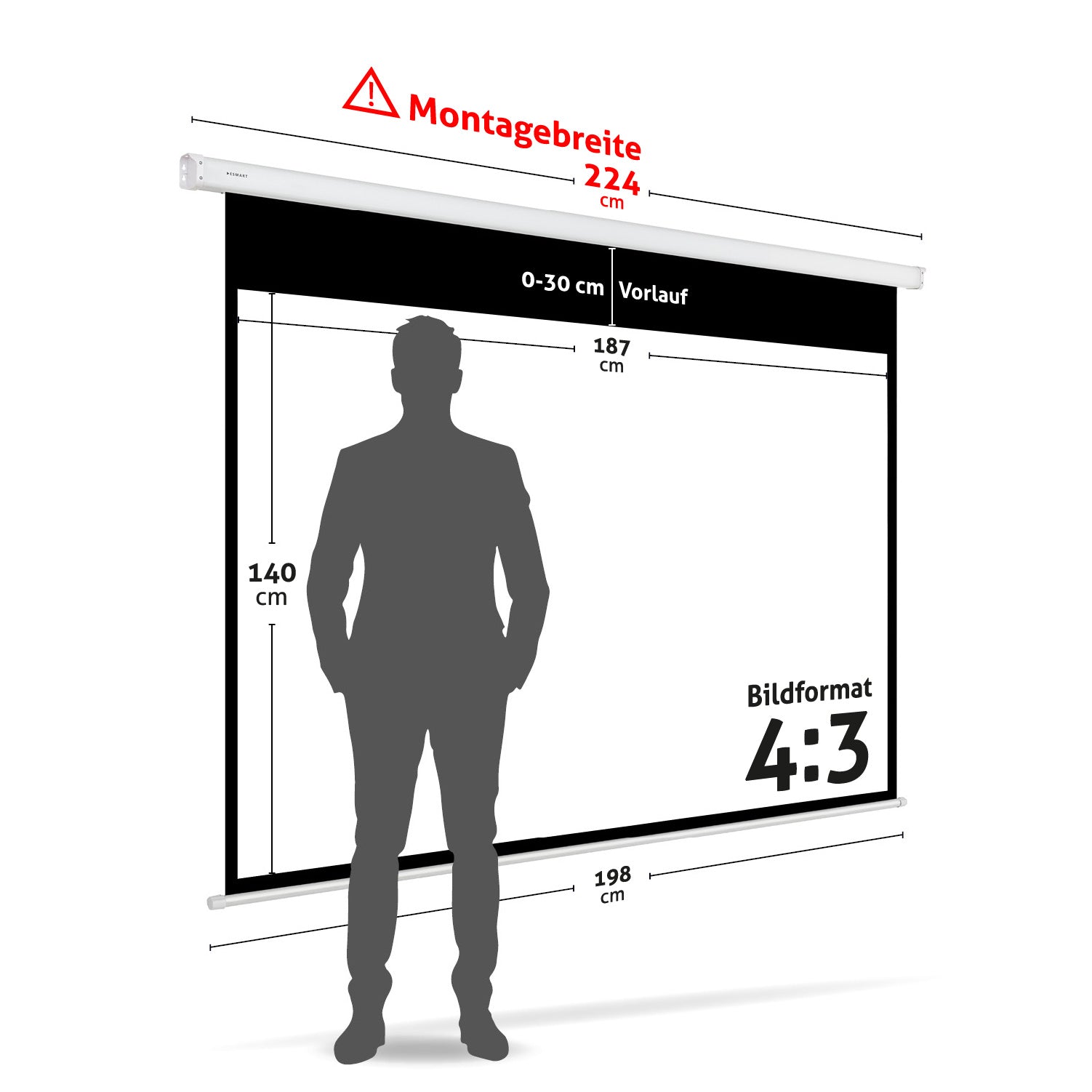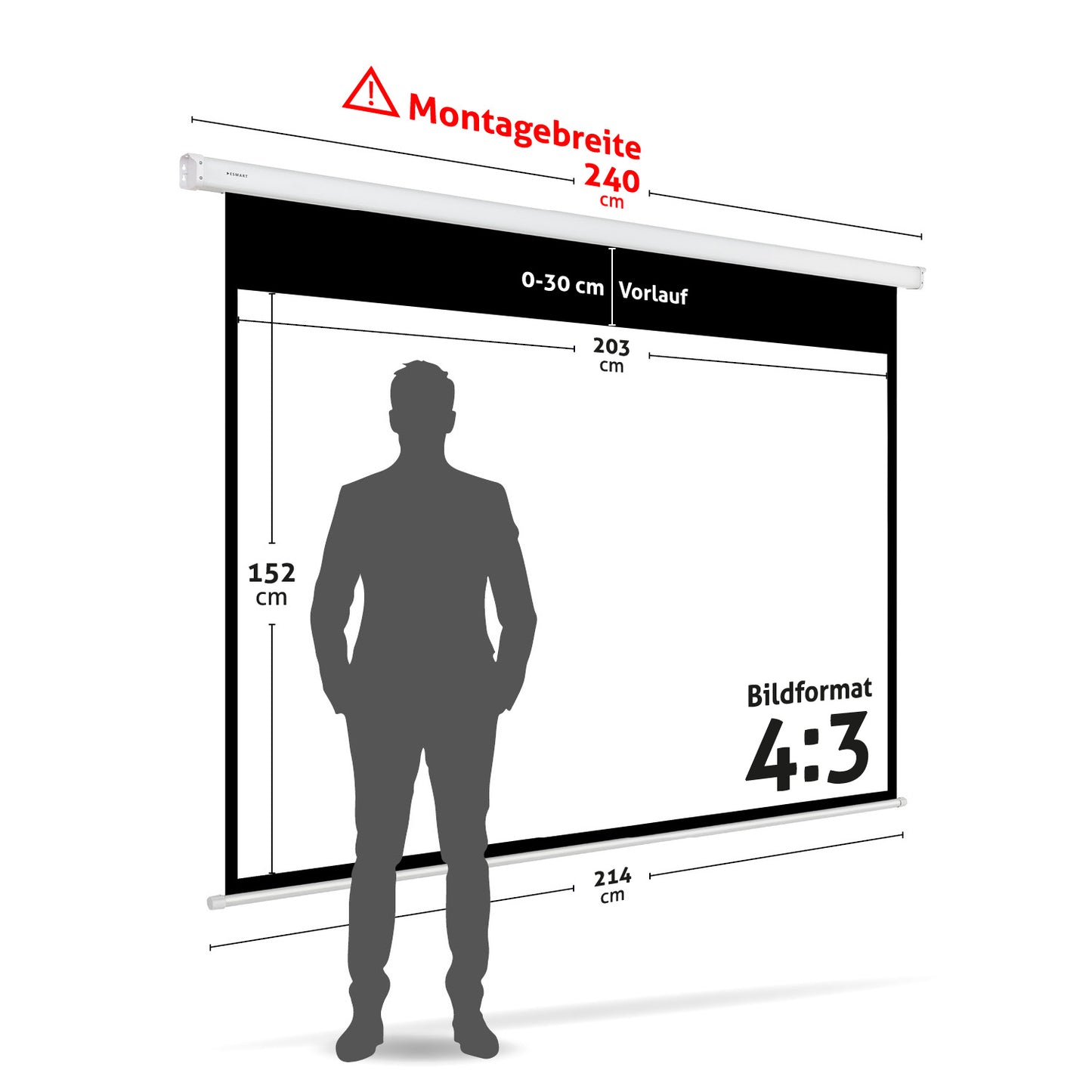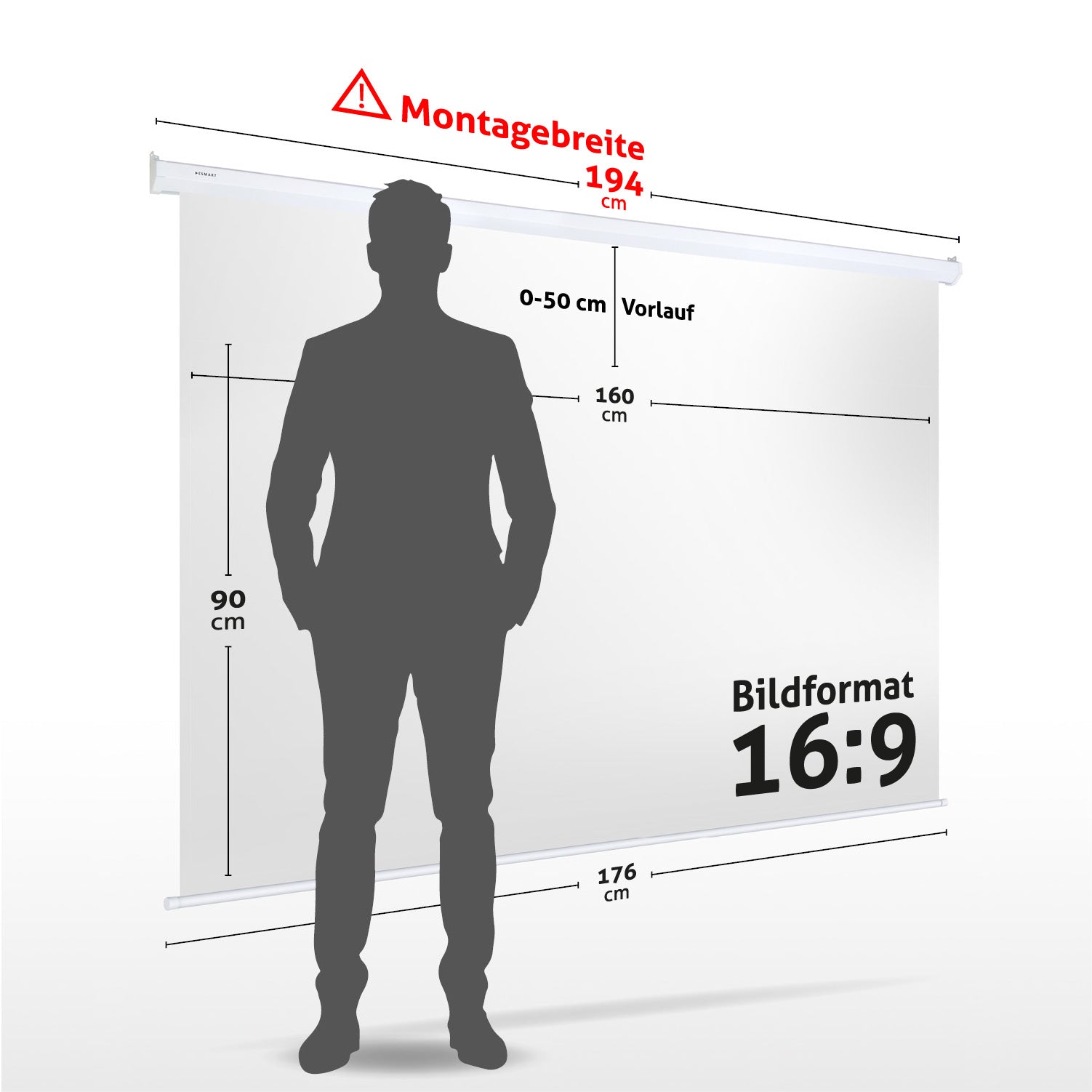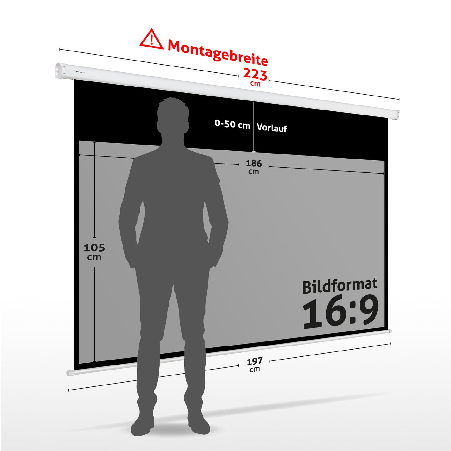 Angebracht werden kann diese elektrische Leinwand an der Decke oder an der Wand. Mithilfe des detaillierten mehrsprachigen Handbuchs ist die Montage einfach und schnell durchgeführt.