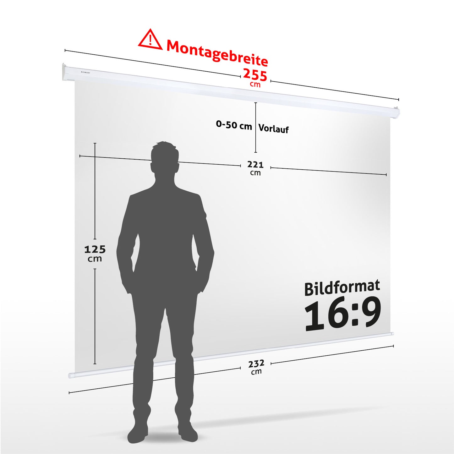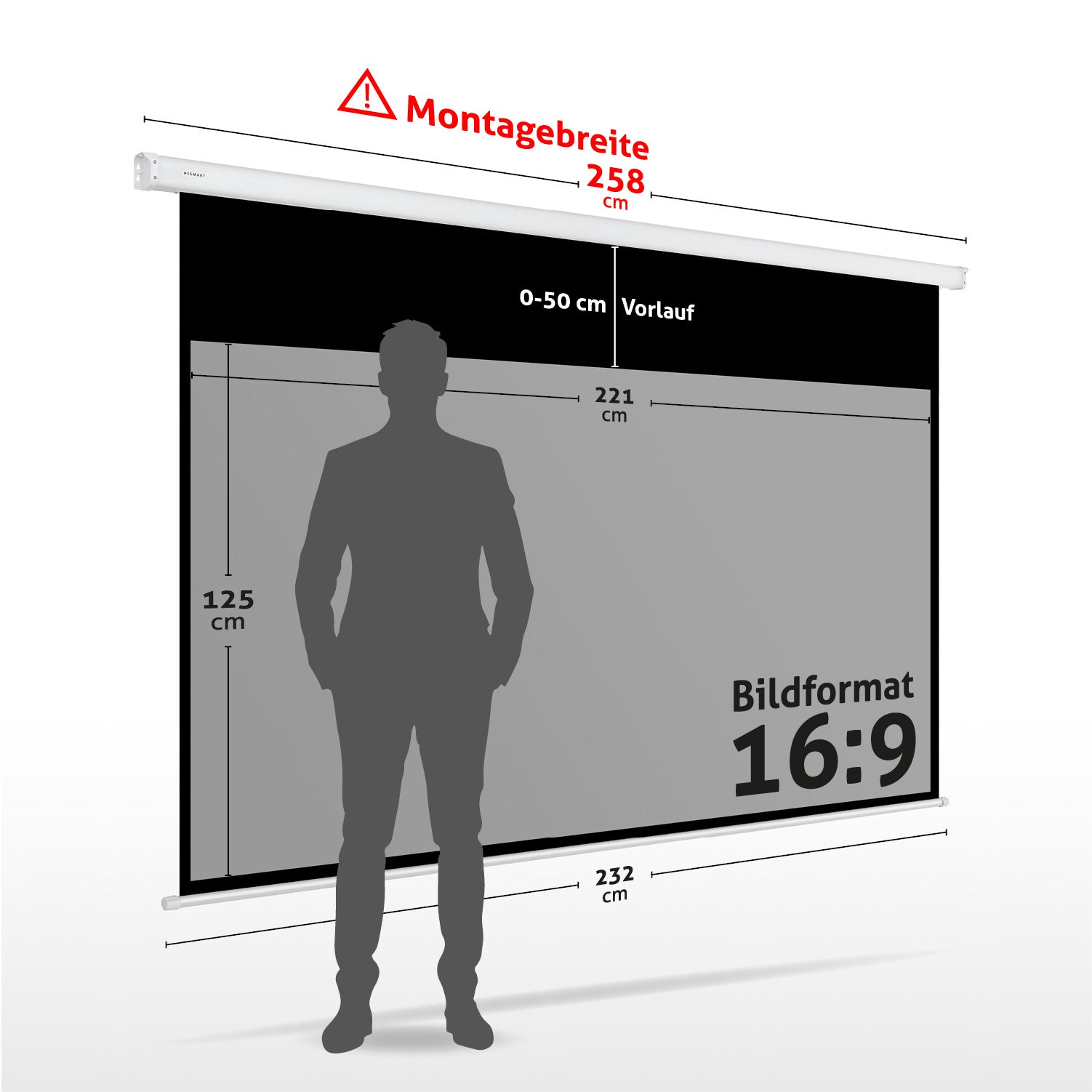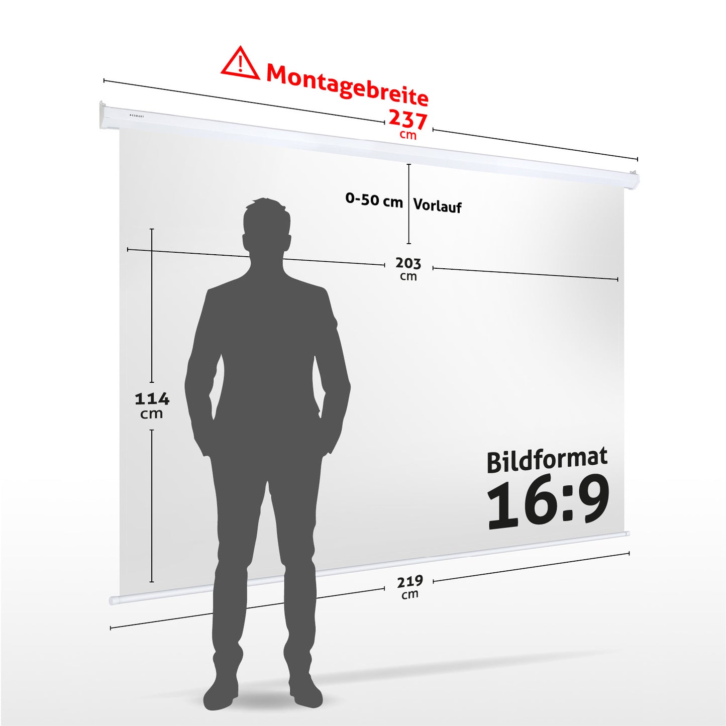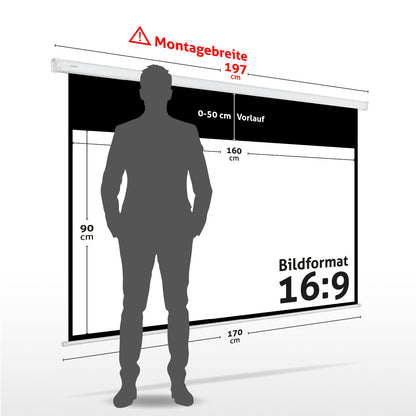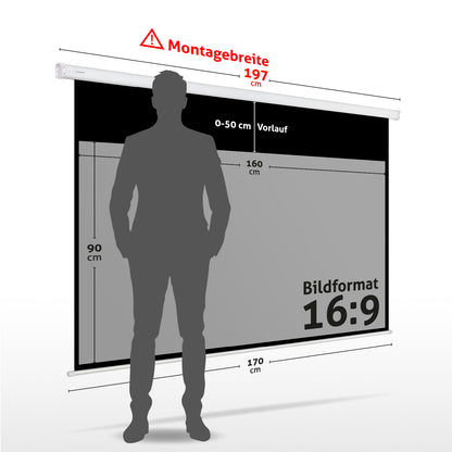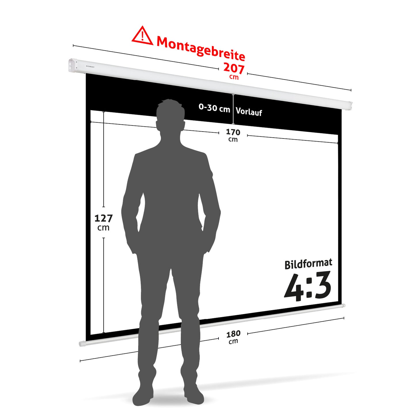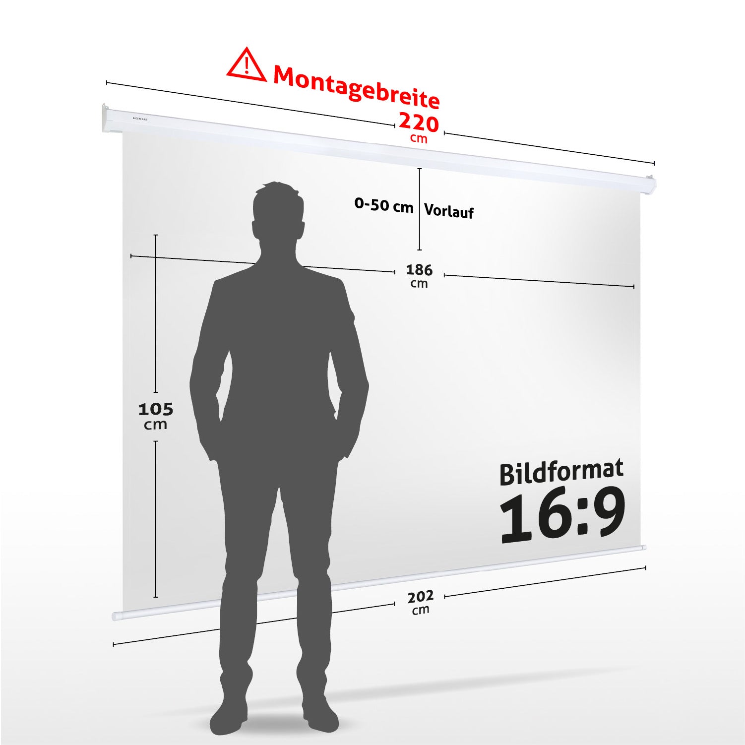 Angebracht werden kann diese elektrische Leinwand an der Decke oder an der Wand. Mithilfe des detaillierten mehrsprachigen Handbuchs ist die Montage einfach und schnell durchgeführt.