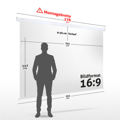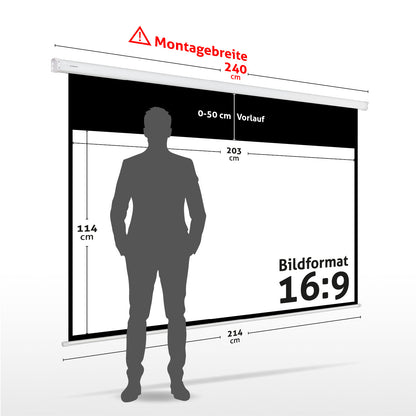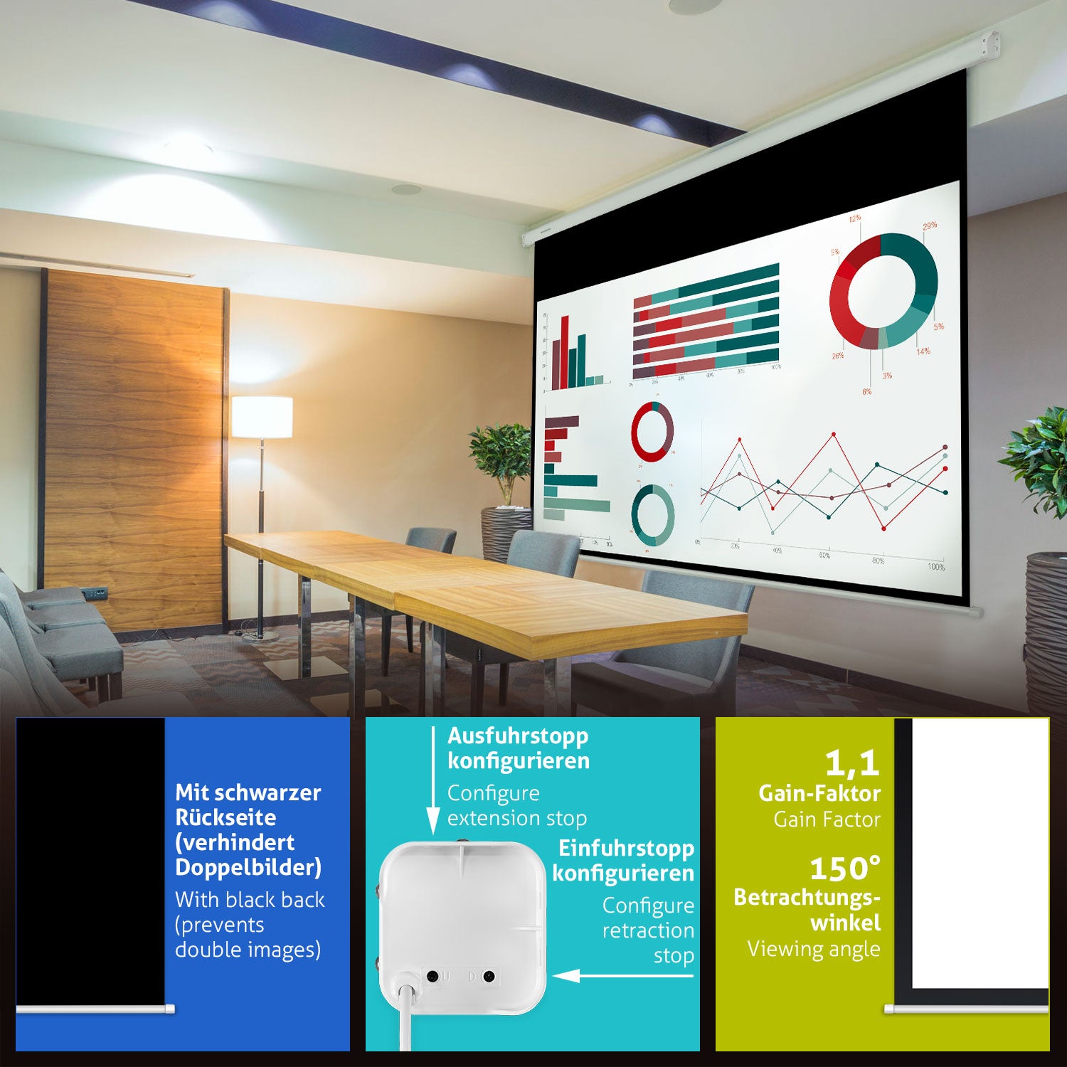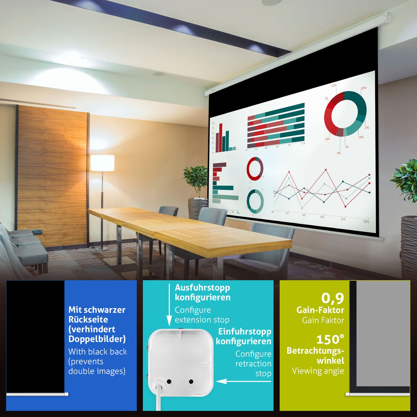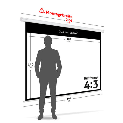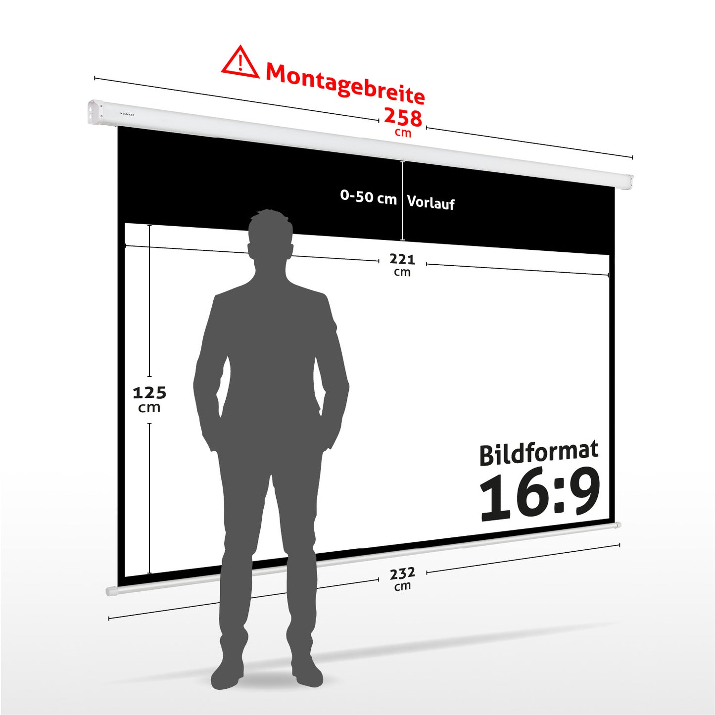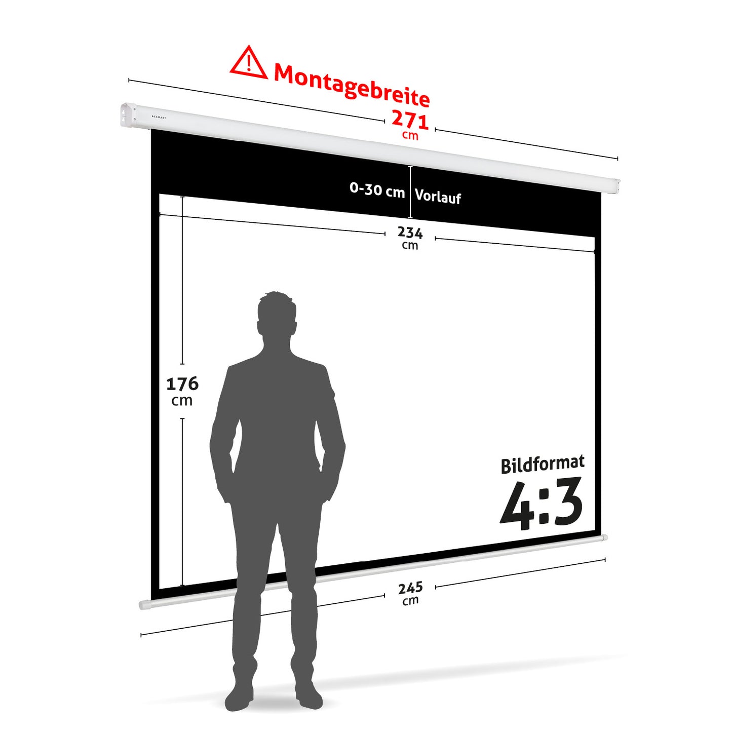 Angebracht werden kann diese elektrische Leinwand an der Decke oder an der Wand. Mithilfe des detaillierten mehrsprachigen Handbuchs ist die Montage einfach und schnell durchgeführt.