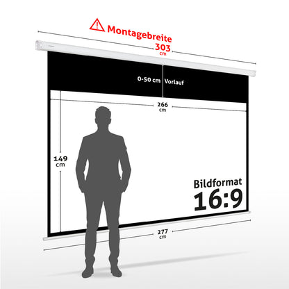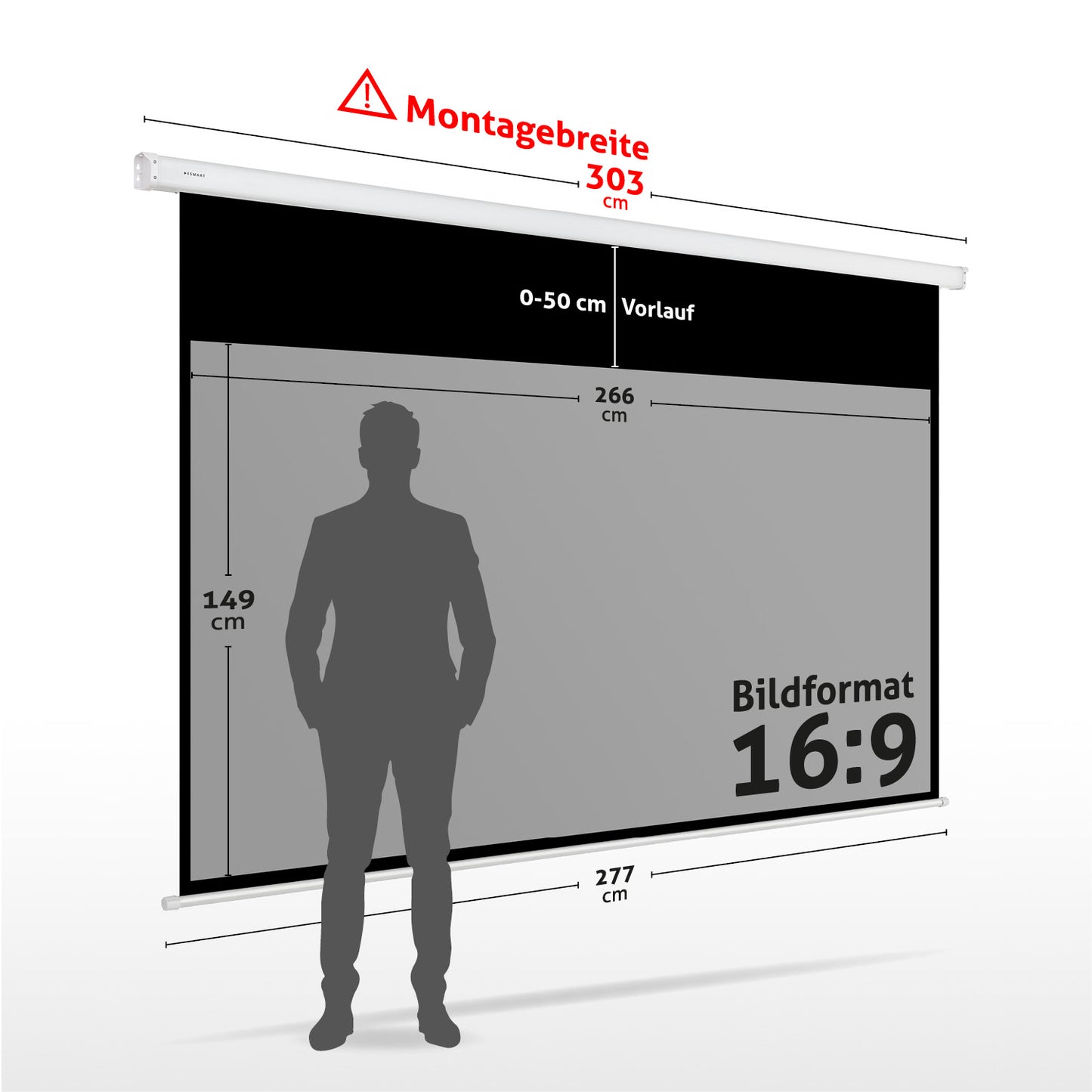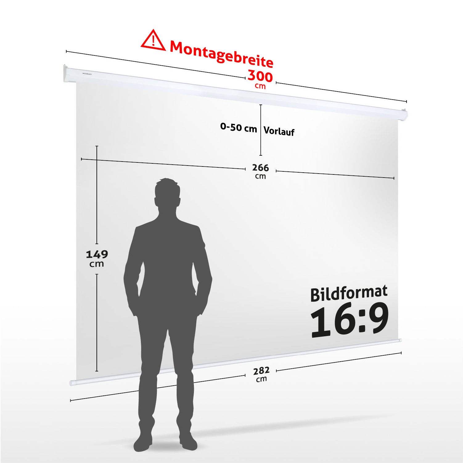 | 16:9 | 266 x 149 (120") | 303 x 8,8 x 8,8 cm | 277 cm | max. 50 cm | 4/4/4 cm | Tetragon |