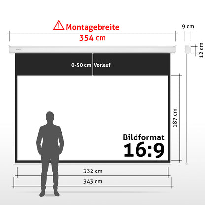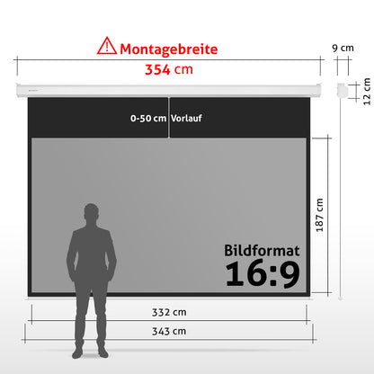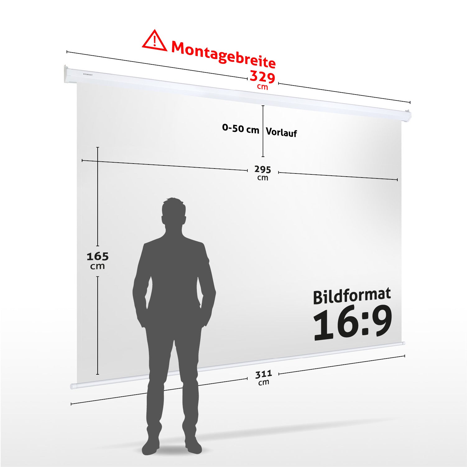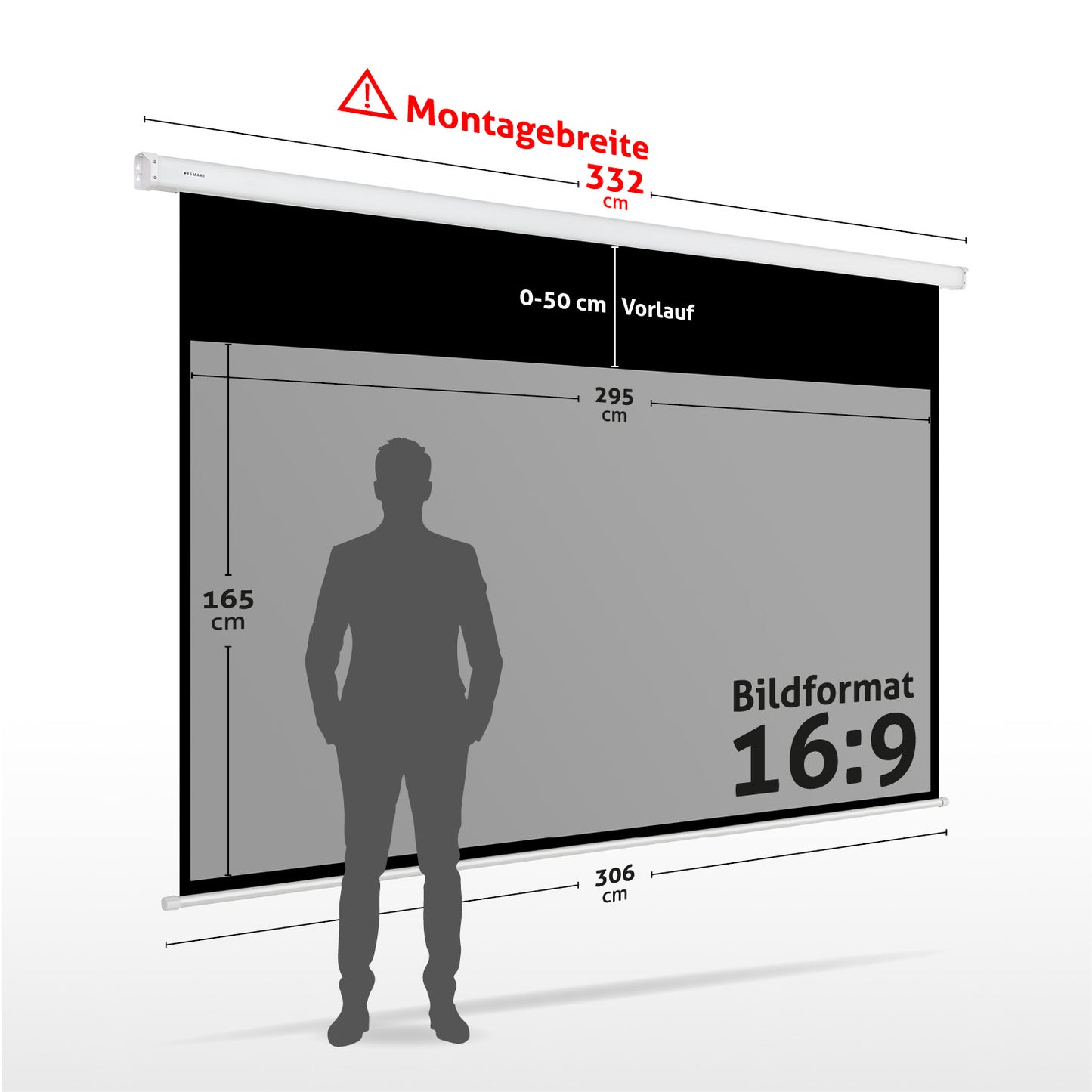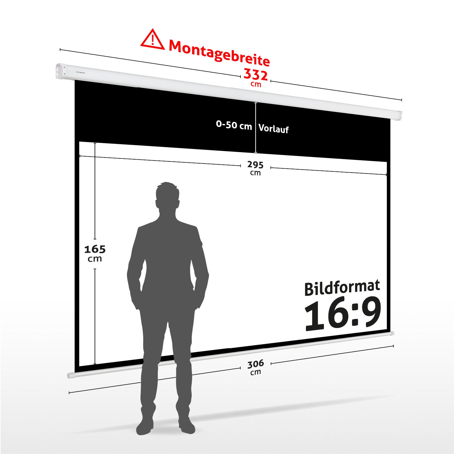 | 16:9 | 295 x 165 (133") | 332 x 8,8 x 8,8 cm | 306 cm | max. 50 cm | 4/4/4 cm | Tetragon |
