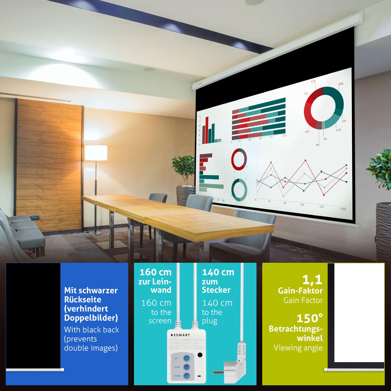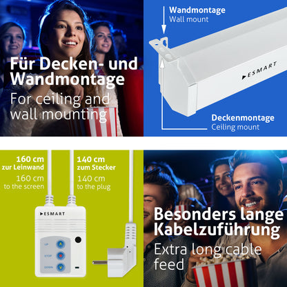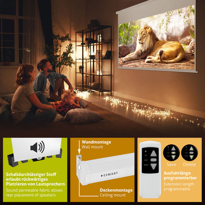 Die elektrische ESMART Professional MIMOTO Motor Leinwand bietet eine Vielzahl von Funktionen bei höchster Material- und Verarbeitungsqualität