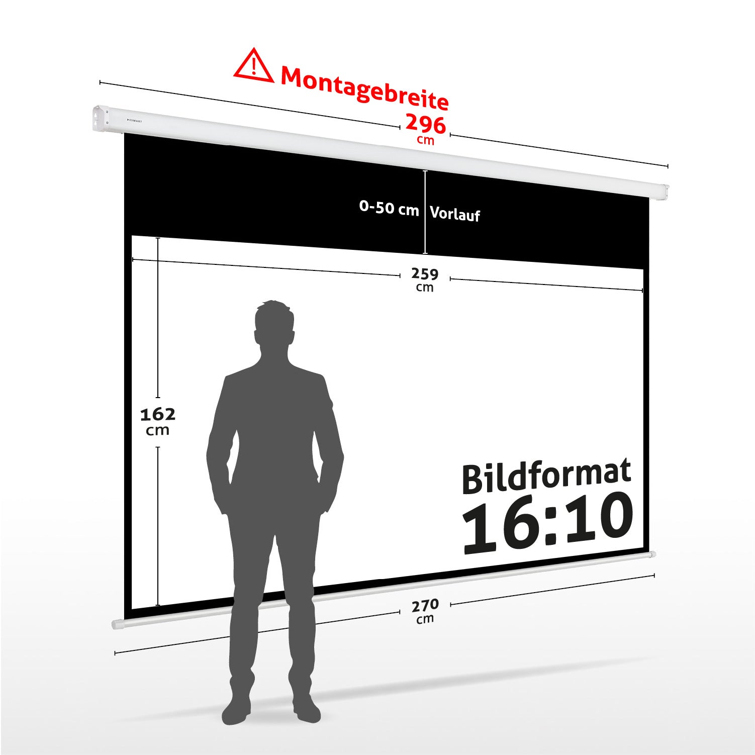 | 16:10 | 259 x 162 (120") | 296 x 8,8 x 8,8 cm | 270 cm | max. 50 cm | 4/4/4 cm | Tetragon |