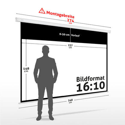 | 16:10 | 237 x 148 (110") | 274 x 8,8 x 8,8 cm | 248 cm | max. 50 cm | 4/4/4 cm | Tetragon |