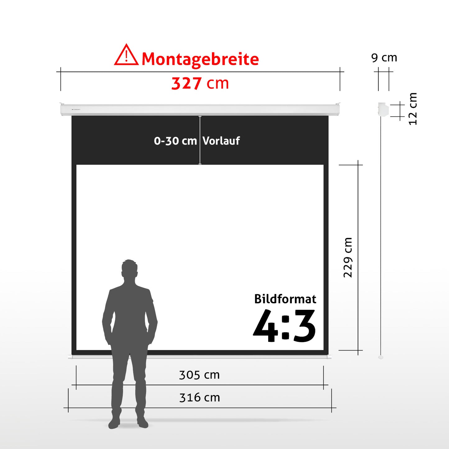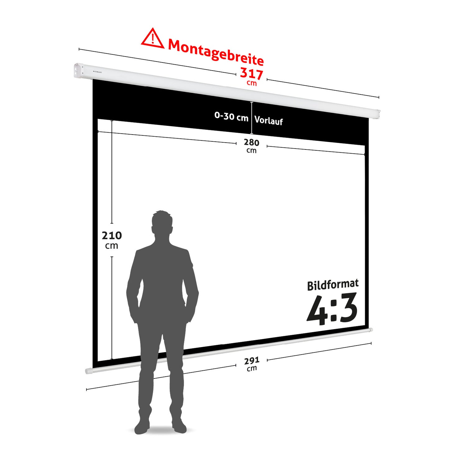 | 4:3 | 280 x 213 (133") | 317 x 8,8 x 8,8 cm | 291 cm | max. 30 cm | 4/4/4 cm | Tetragon |