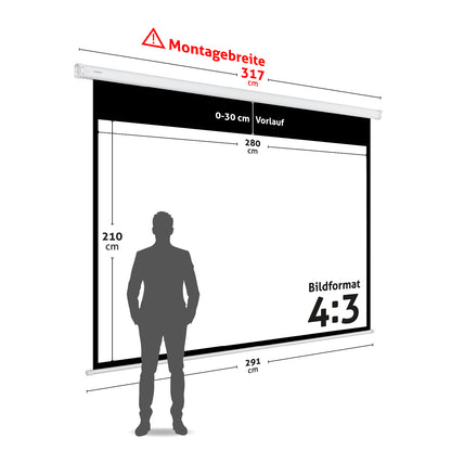 | 4:3 | 280 x 210 (138") | 317 x 8,8 x 8,8 cm | 291 cm | max. 30 cm | 4/4/4 cm | Tetragon |