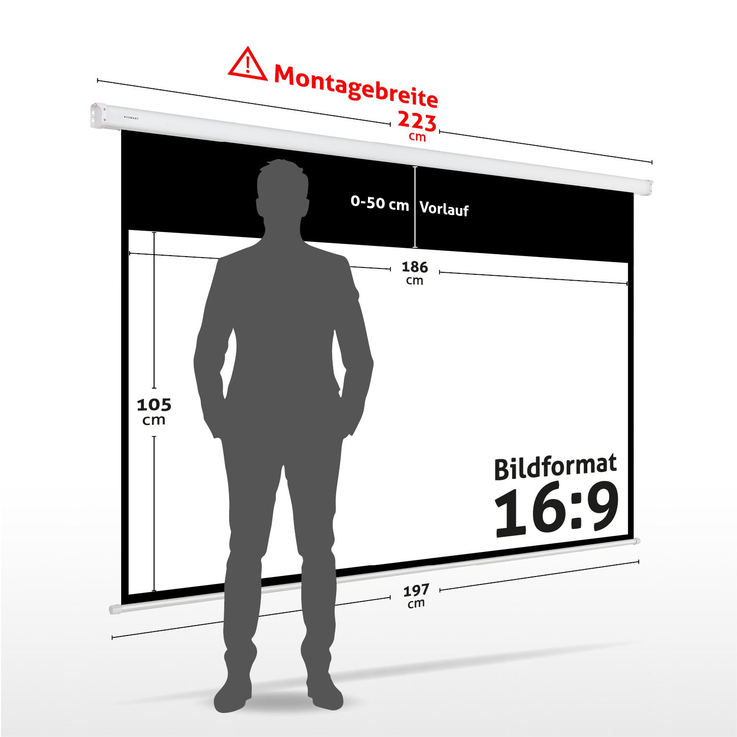 | 16:9 | 186 x 105 (84") | 223 x 8,8 x 8,8 cm | 197 cm | max. 50 cm | 4/4/4 cm | Tetragon |