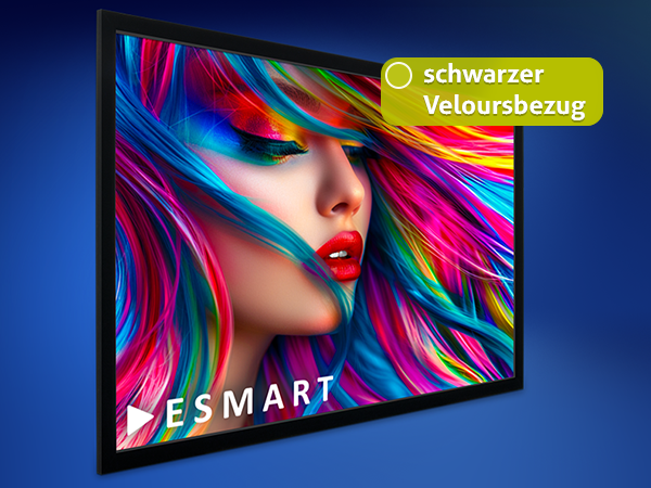 Der veloursbezogene Rahmen und das ESMART PremiumWhite 2 Leinwandtuch machen dieses Produkt zur idealen Leinwand für Heimkino, Präsentation, Schule und Business.