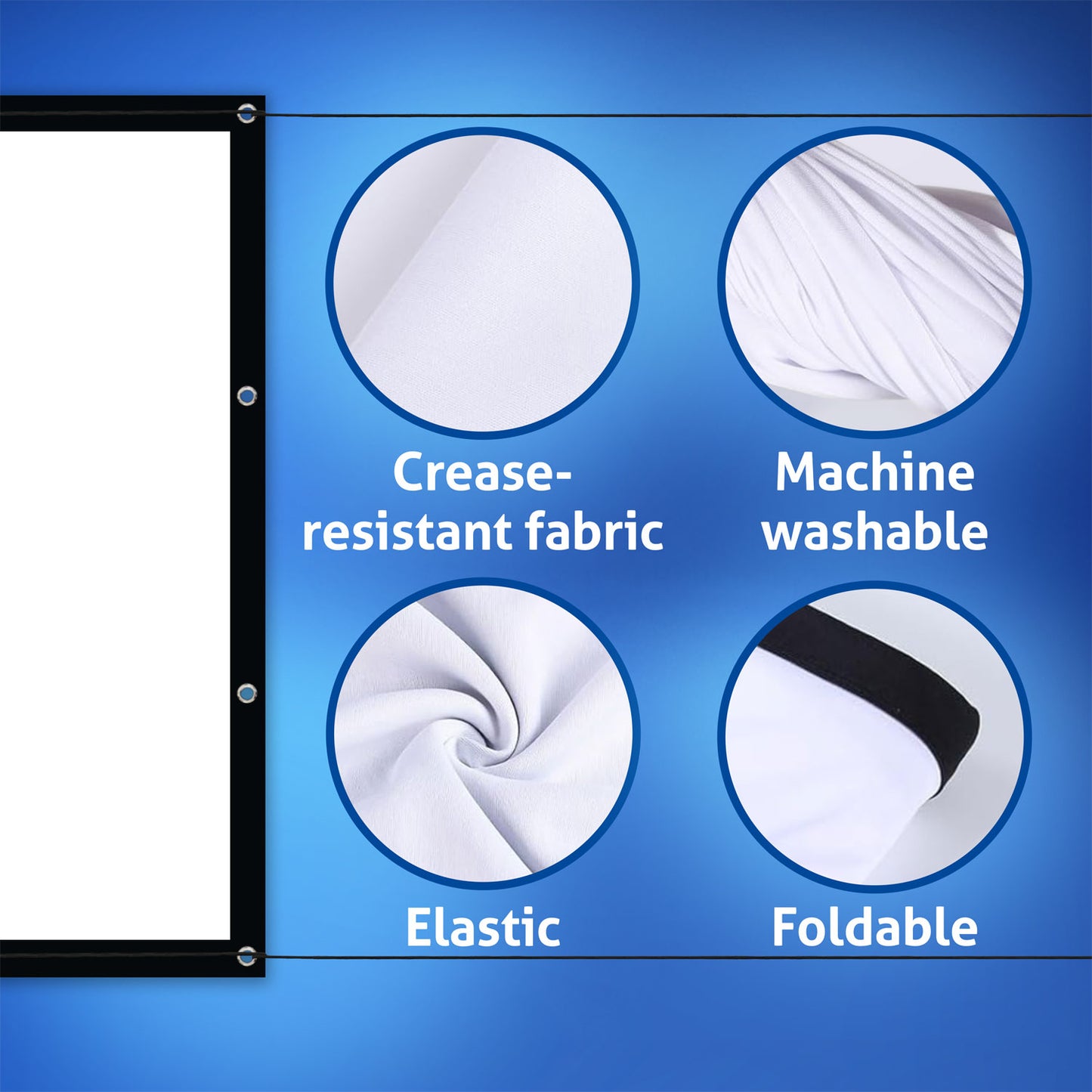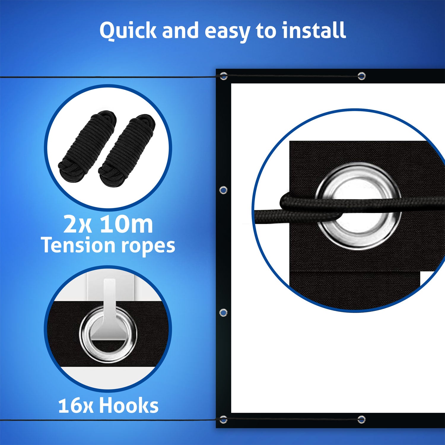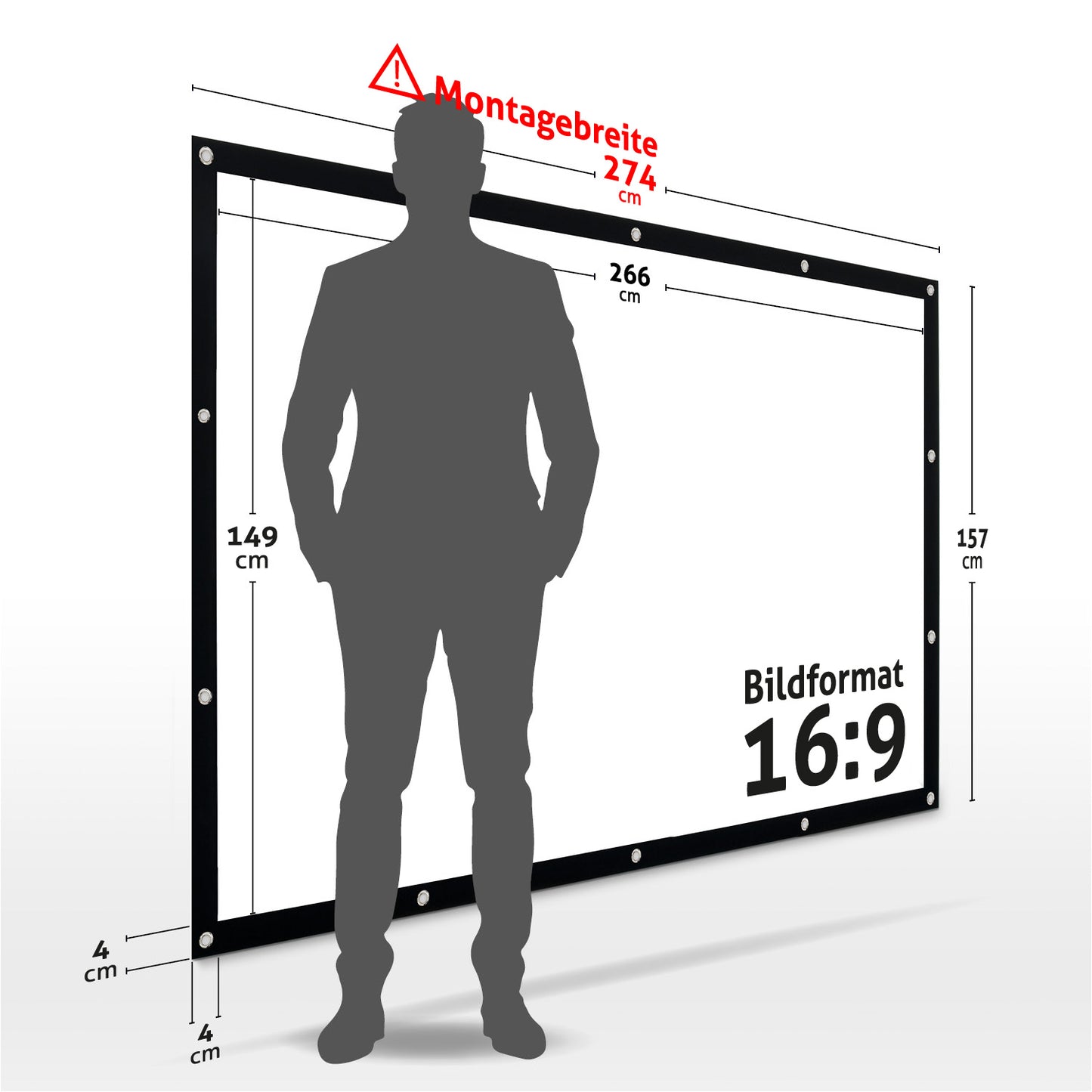 Genießen Sie hochauflösende Inhalte in bester Qualität mit der ESMART Spann Leinwand FLEX. Diese große Beamer-Leinwand im Format 16:9 bringt Heimkino-Feeling direkt in Ihr Zuhause. Der weiße Leinwandstoff sorgt für hohen Betrachtungskomfort und ein kontrastreiches Bild, während der schwarze Rahmen den Kontrast erhöht. Ideal für Filme, Spiele und professionelle Präsentationen, kompatibel mit LED-, LCD- und DLP-Projektoren. Profitieren Sie von der Möglichkeit einer Rückprojektion, bei der das Bild von hinten auf die Leinwand projiziert wird, um eine optimale Bildqualität und Flexibilität bei der Raumgestaltung zu gewährleisten. Einfach an der Wand mit den mitgelieferten Spannseilen montiert, bietet diese Leinwand das perfekte Bild für jeden Anlass, egal ob drinnen oder draußen. Gönnen Sie sich und Ihren Liebsten den Luxus von hochwertigen Bildprojektionen und schaffen Sie Erinnerungen, die lange nachklingen.