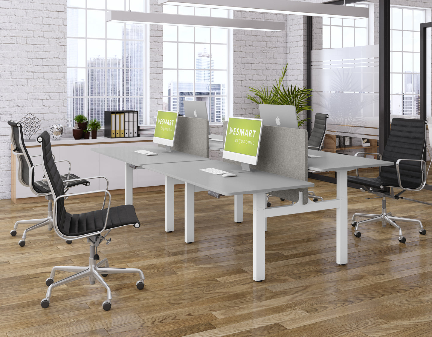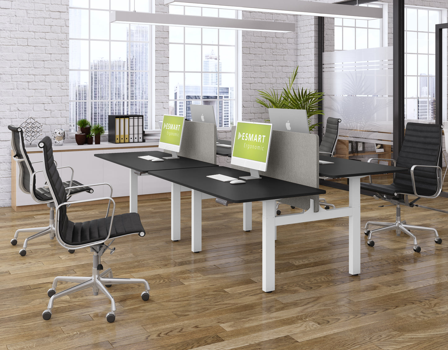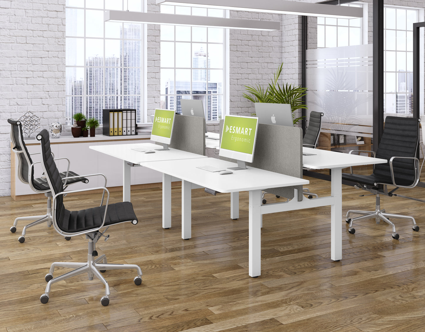 Der ESMART höhenverstellbare Doppelschreibtisch eignet sich bestens für ein dynamisches Arbeiten im Stehen und Sitzen. Durch regelmäßiges Arbeiten im Stehen verringern Sie Folgen wie Rückenschmerzen, Stress, Müdigkeit sowie ein höheres Krankheitsrisiko. Mit den höhenverstellbaren Schreibtischen verfügen Sie beim Arbeiten über mehr Energie, sind produktiver und fühlen sich auch am Feierabend noch rundum fit.