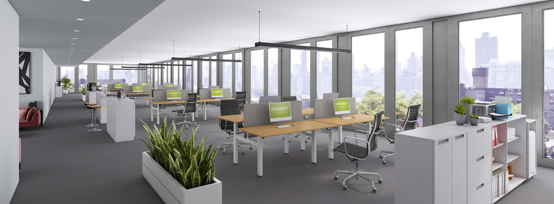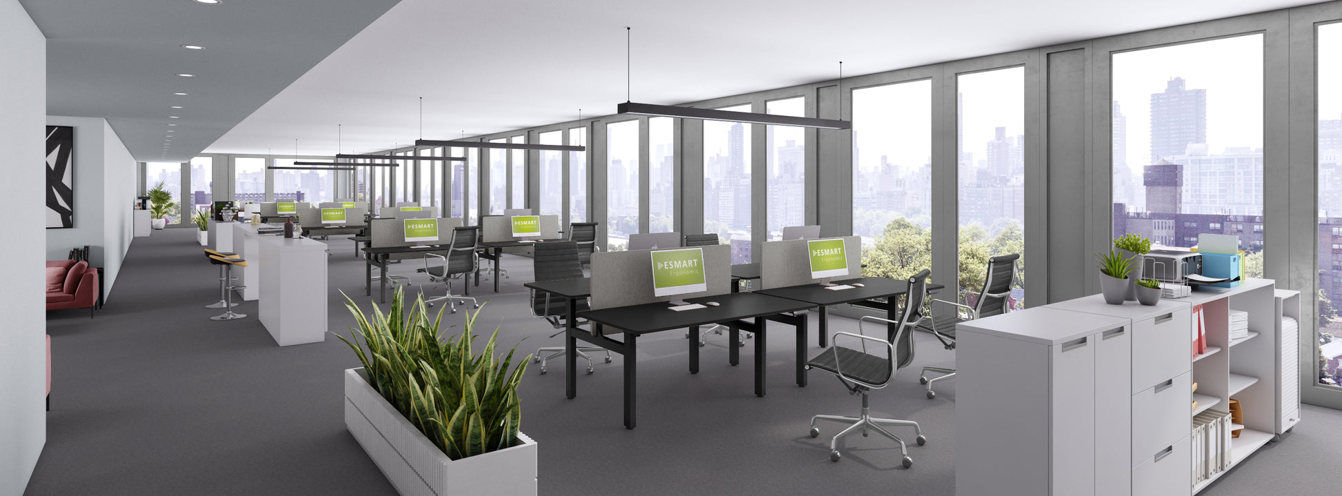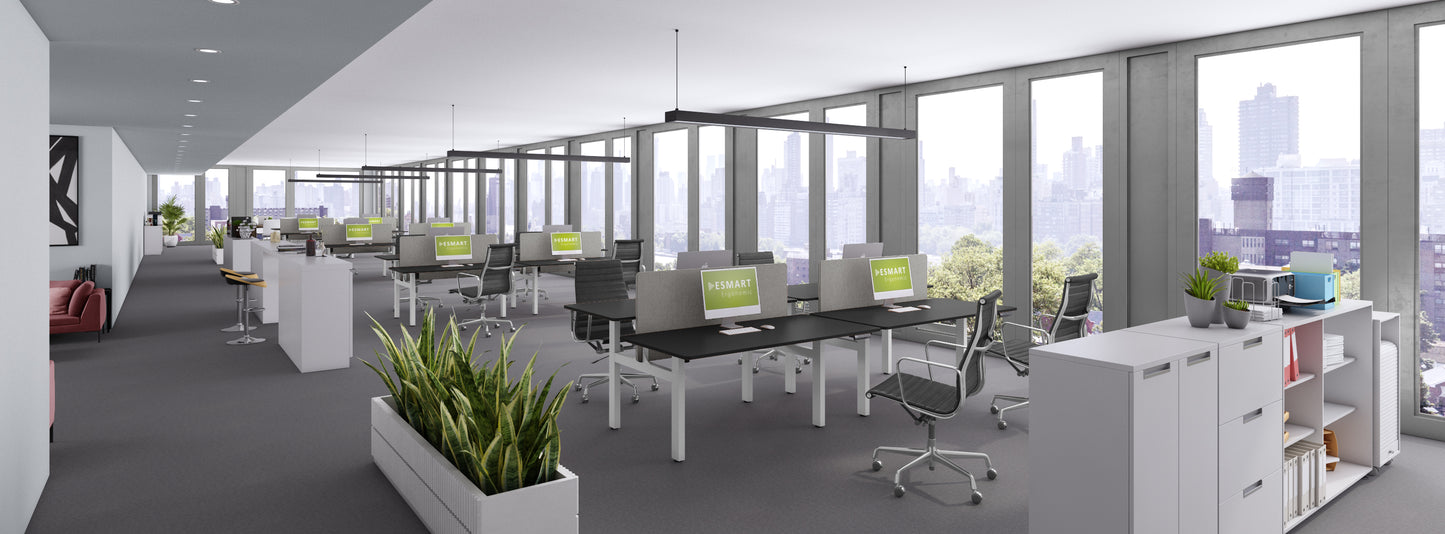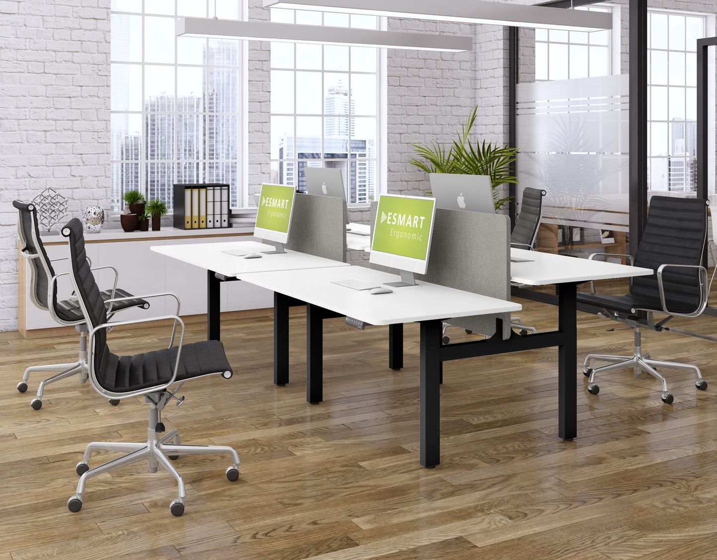 Der ESMART höhenverstellbare Doppelschreibtisch eignet sich bestens für ein dynamisches Arbeiten im Stehen und Sitzen. Durch regelmäßiges Arbeiten im Stehen verringern Sie Folgen wie Rückenschmerzen, Stress, Müdigkeit sowie ein höheres Krankheitsrisiko. Mit den höhenverstellbaren Schreibtischen verfügen Sie beim Arbeiten über mehr Energie, sind produktiver und fühlen sich auch am Feierabend noch rundum fit.