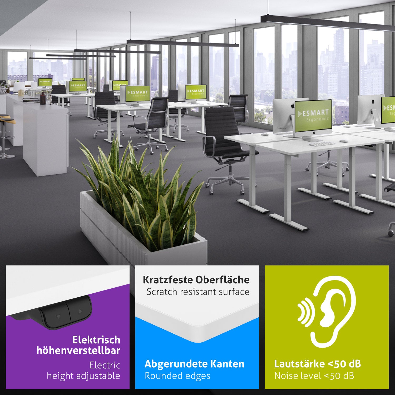 ESMART Elektrisch höhenverstellbare Schreibtische bilden den Mittelpunkt einer jeden funktionalen Bürolandschaft