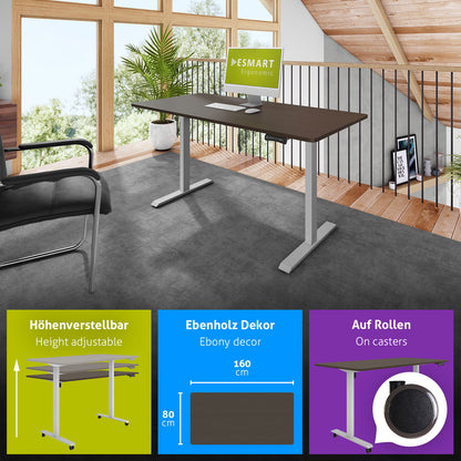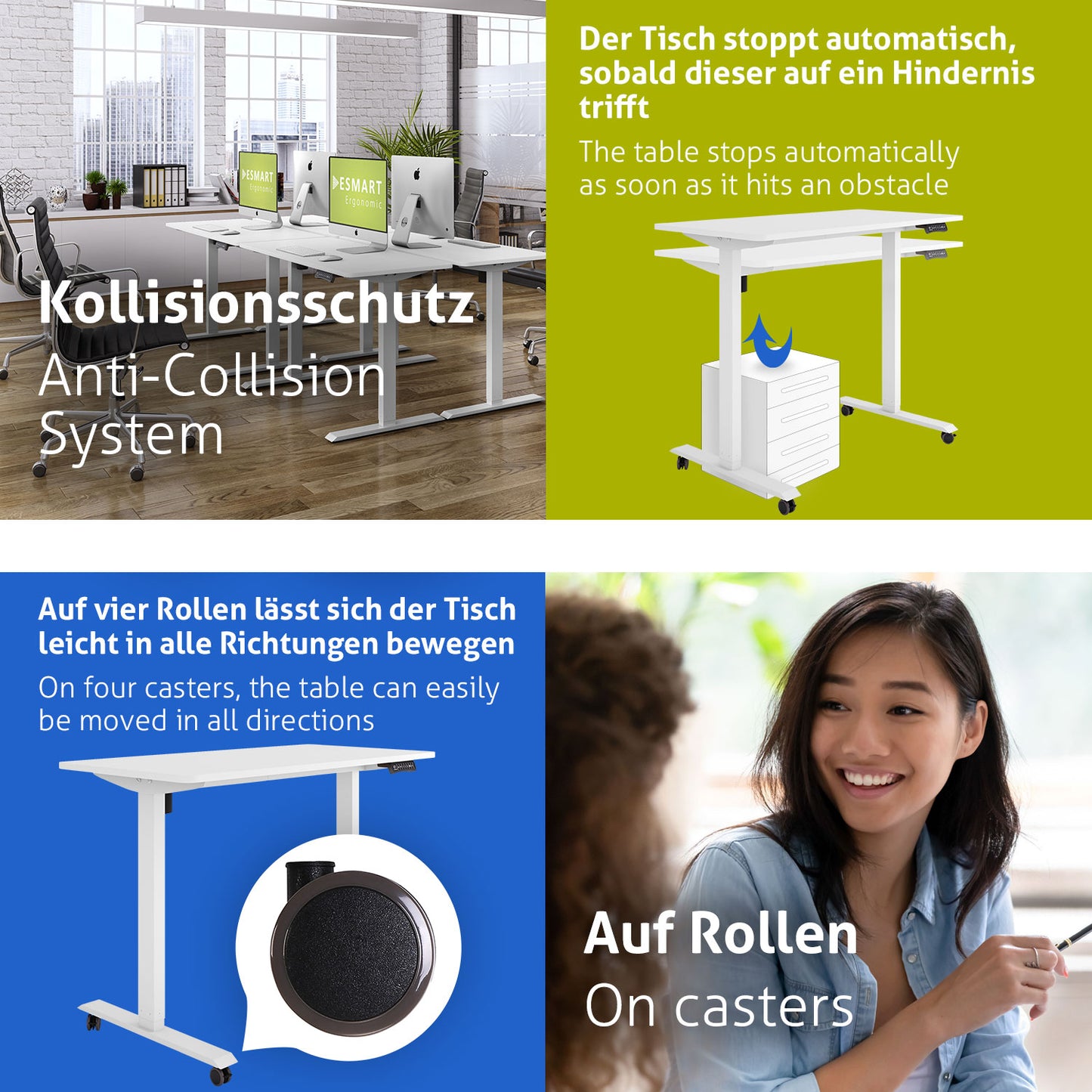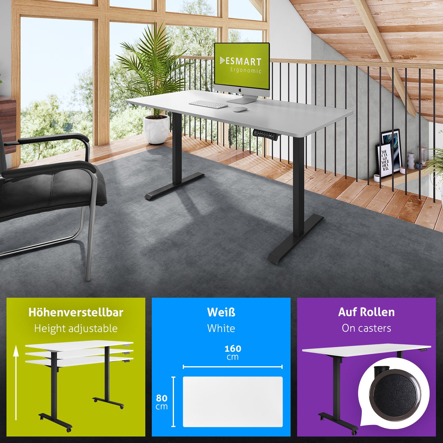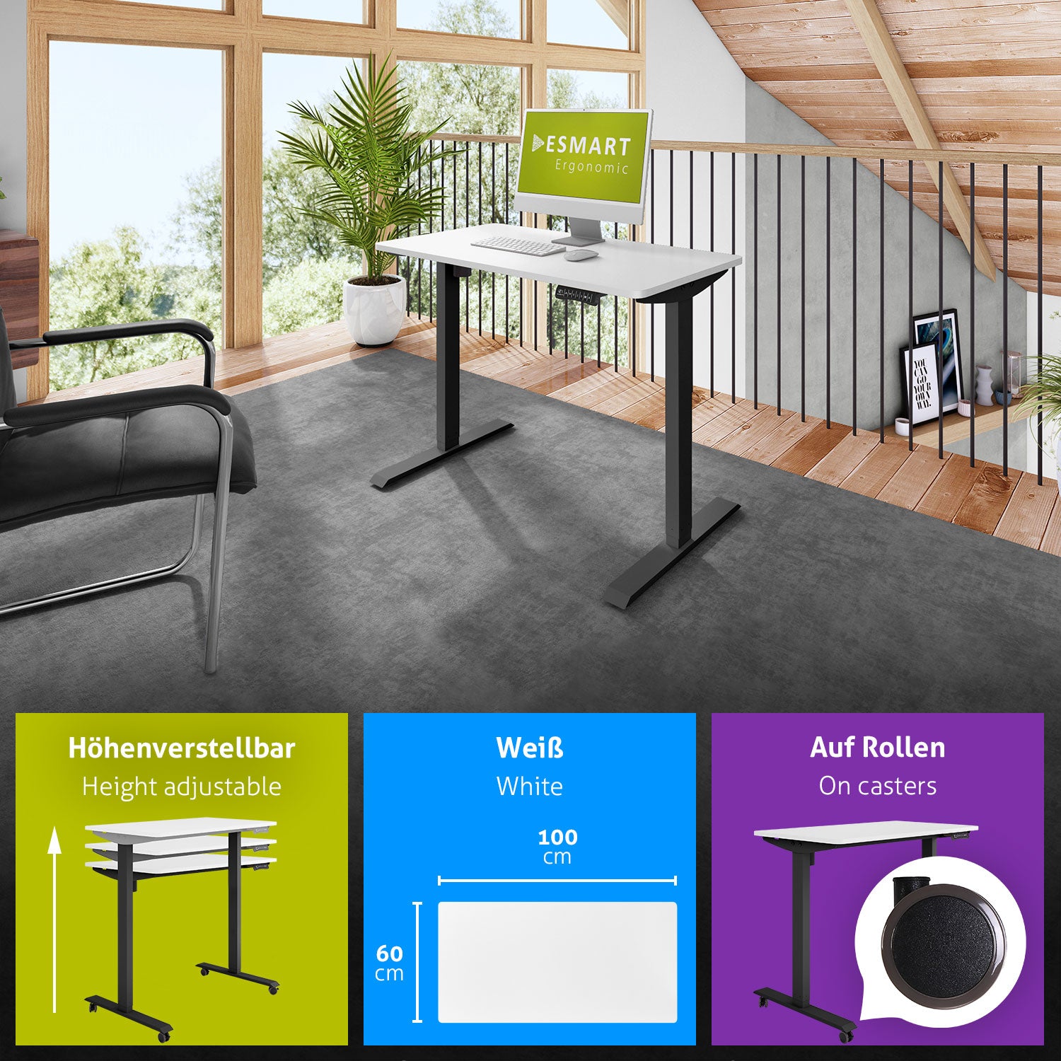 ESMART Höhenverstellbarer Schreibtisch ETX Series auf Rollen
